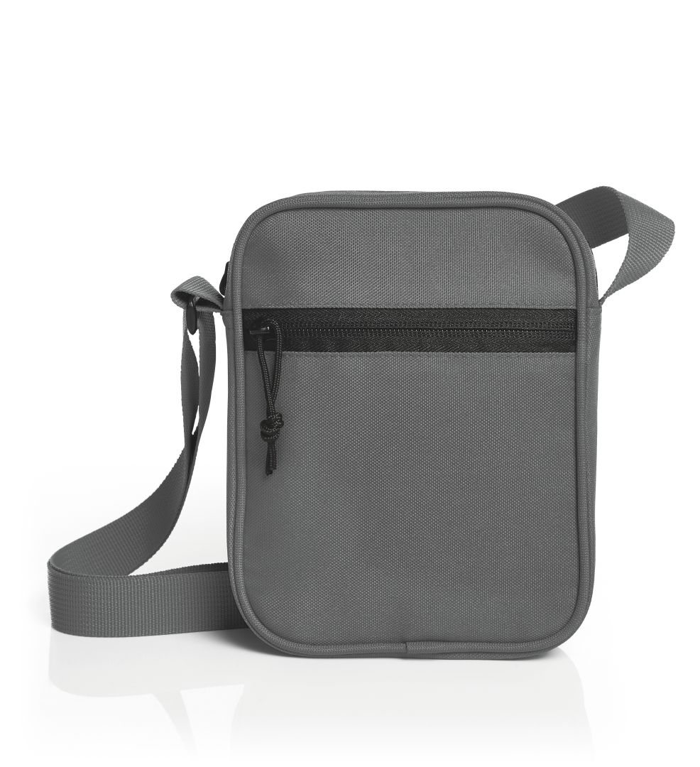 small, functional shoulder bag; main compartment with flat zip front pocket; length-adjustable shoulder strap