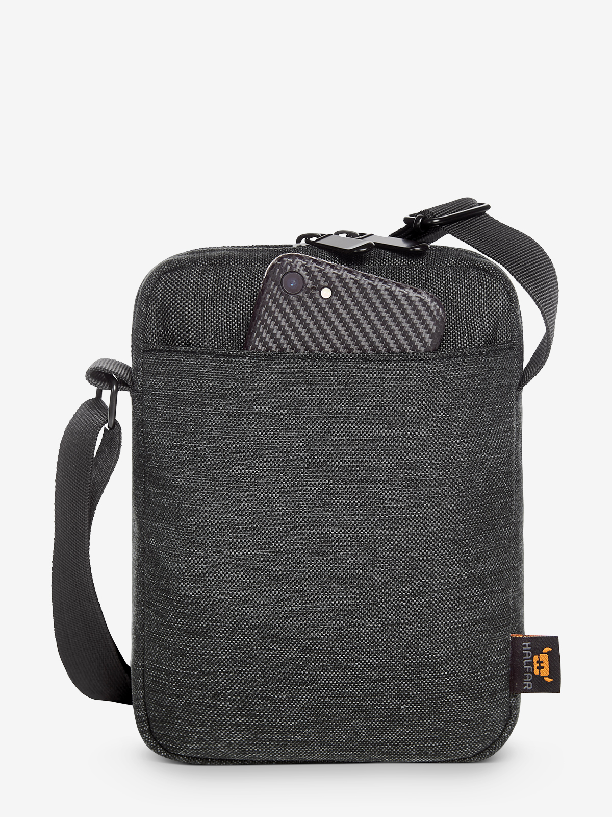 Large smartphone? Powerbank as well? Not without my e-reader? No problem, the cross bag is like an extended trouser pocket, or actually even better than that. After all, the look is cool worn crossbody and looks stylish too. Great for business or leisure. And because the bag is so small, it can be taken everywhere where the big ones have to stay outside – such as to the theatre, museum or anywhere else... The decorative seams cleverly produce a frame around the logo and draw the eye to it. With HALFAR FAST LANE®, your cross bag is decorated exceptionally quickly and effectively – find out more information now.