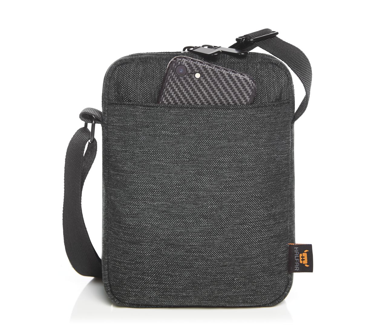 Large smartphone? Powerbank as well? Not without my e-reader? No problem, the cross bag is like an extended trouser pocket, or actually even better than that. After all, the look is cool worn crossbody and looks stylish too. Great for business or leisure. And because the bag is so small, it can be taken everywhere where the big ones have to stay outside – such as to the theatre, museum or anywhere else... The decorative seams cleverly produce a frame around the logo and draw the eye to it. With HALFAR FAST LANE®, your cross bag is decorated exceptionally quickly and effectively – find out more information now.