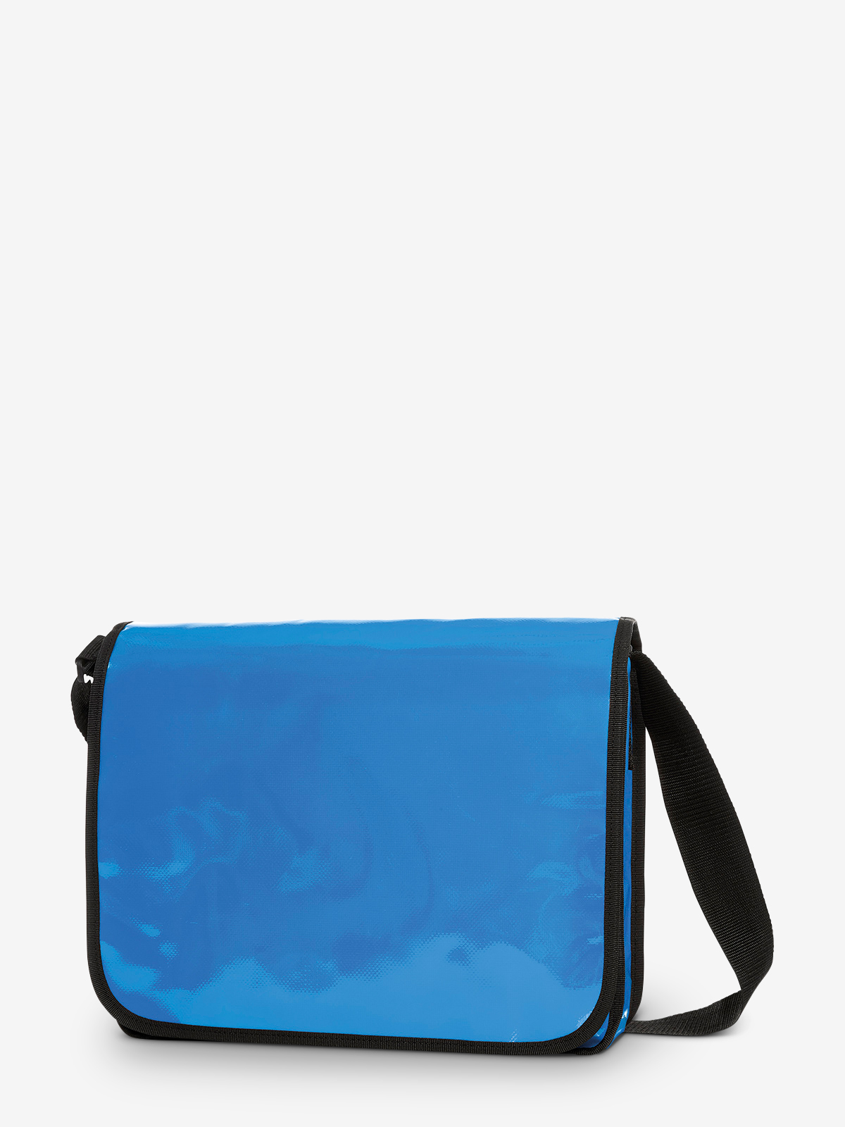 spacious main compartment with organizer features and flat inside pocket; wide shoulder strap; large flap (i.e. large decoration area) with hook and loop tape fastener