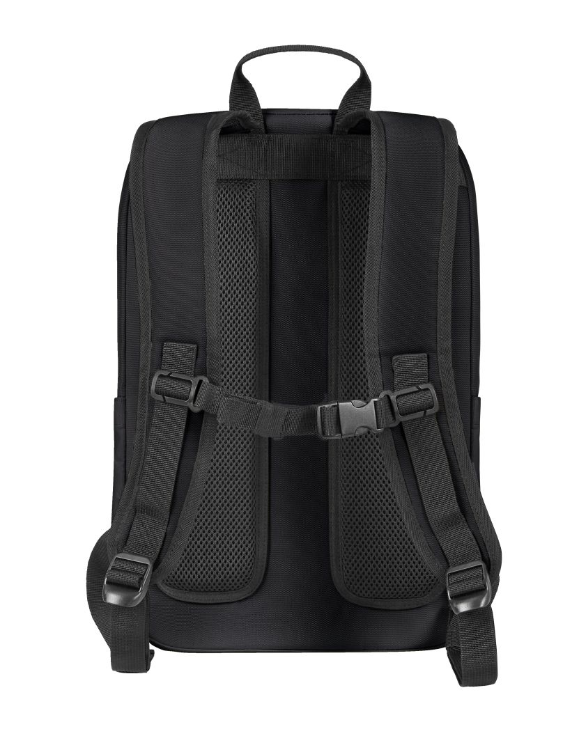 Spacious main compartment with 2-way zip: padded notebook compartment; 2 zipped front pockets; two side slip-in pockets; back and shoulder straps padded with height-adjustable chest belt; handle