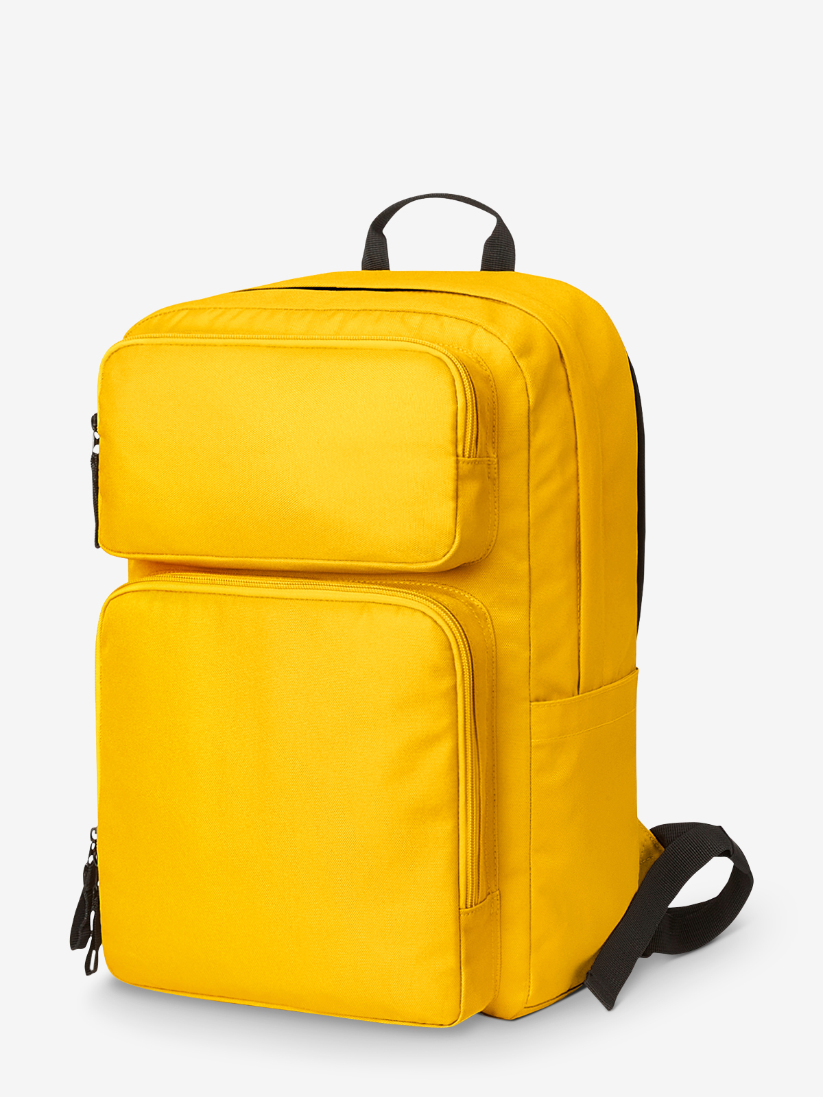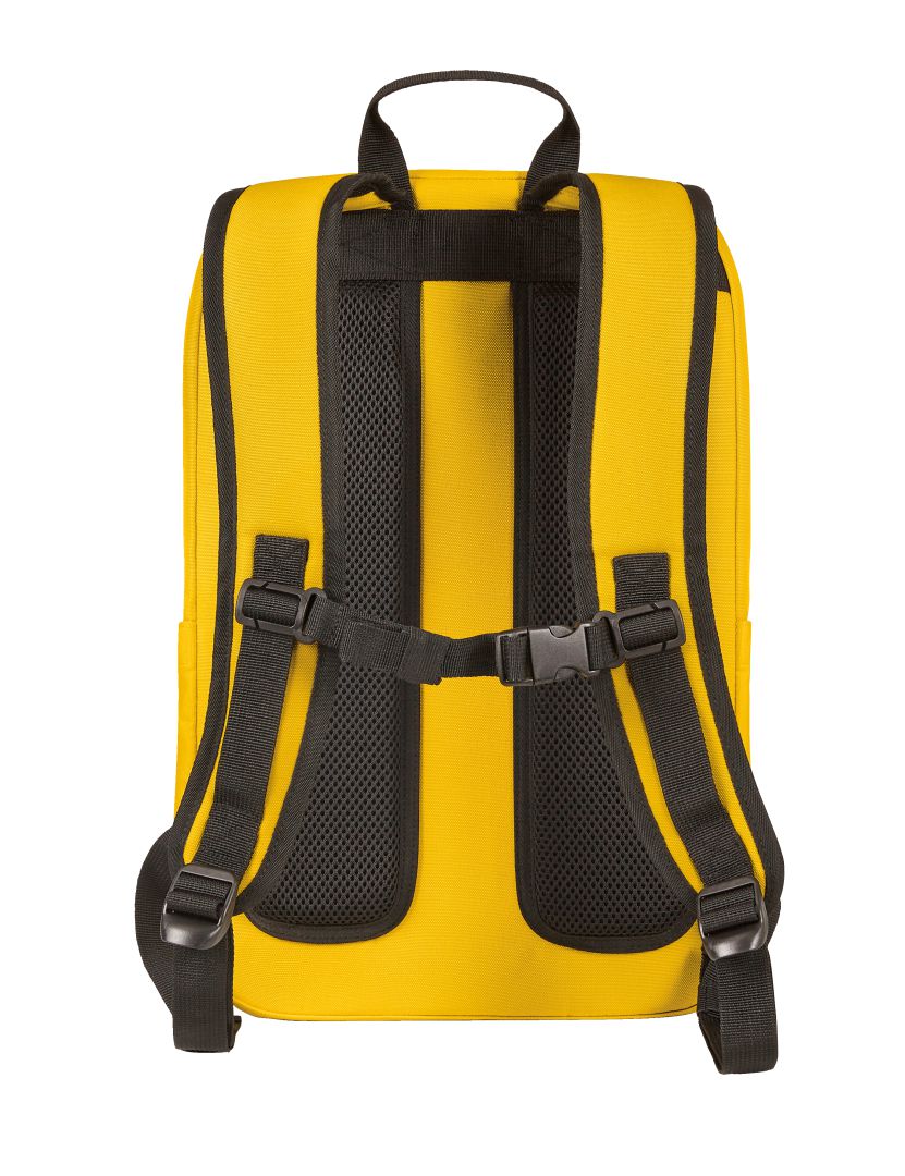 Spacious main compartment with 2-way zip: padded notebook compartment; 2 zipped front pockets; two side slip-in pockets; back and shoulder straps padded with height-adjustable chest belt; handle