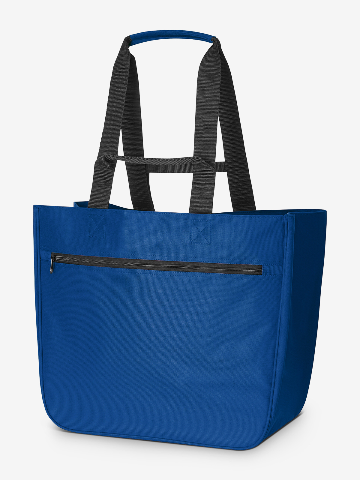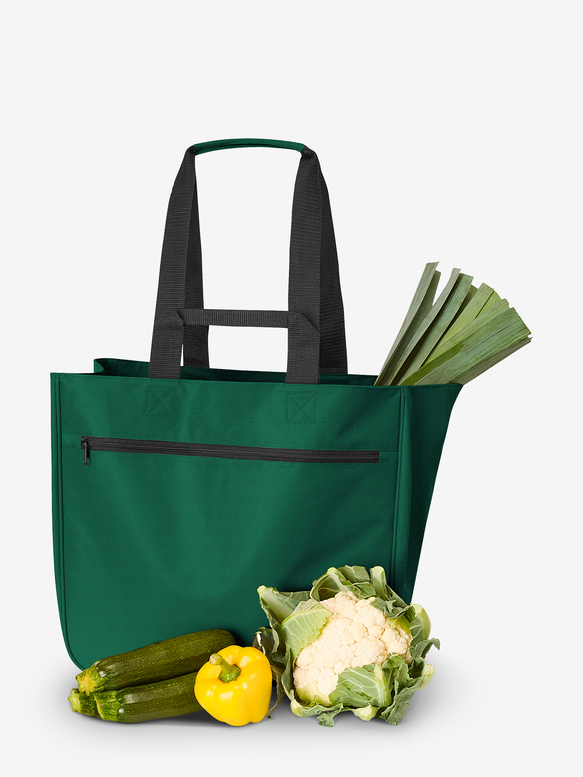 Flexible, spacious shopper for a range of uses; large main compartment with base feet; zipped front pocket; carrying system with double handles and padded handle cuff for best carrying comfort