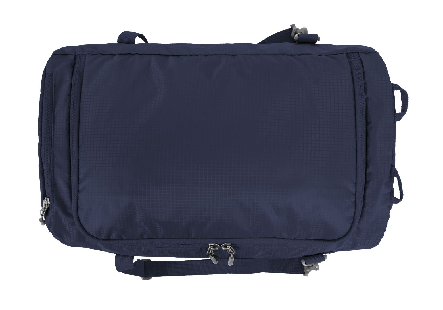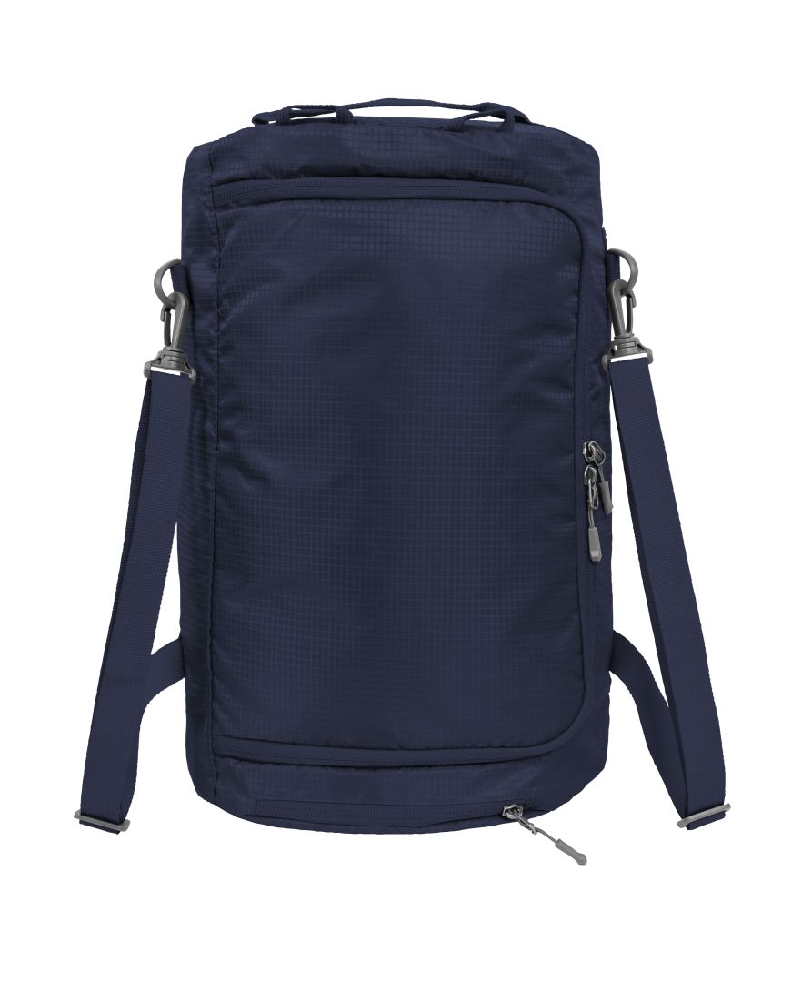 Lightweight, functional sports bag with backpack function; spacious main compartment; large opening with 2-way zip; zipped pocket in the lid; hanging as well as flat zipped pocket inside; zipped pocket on the side; functional strap band; handles on both sides; adjustable carrying handles can also be used as backpack straps; decorative reflective print