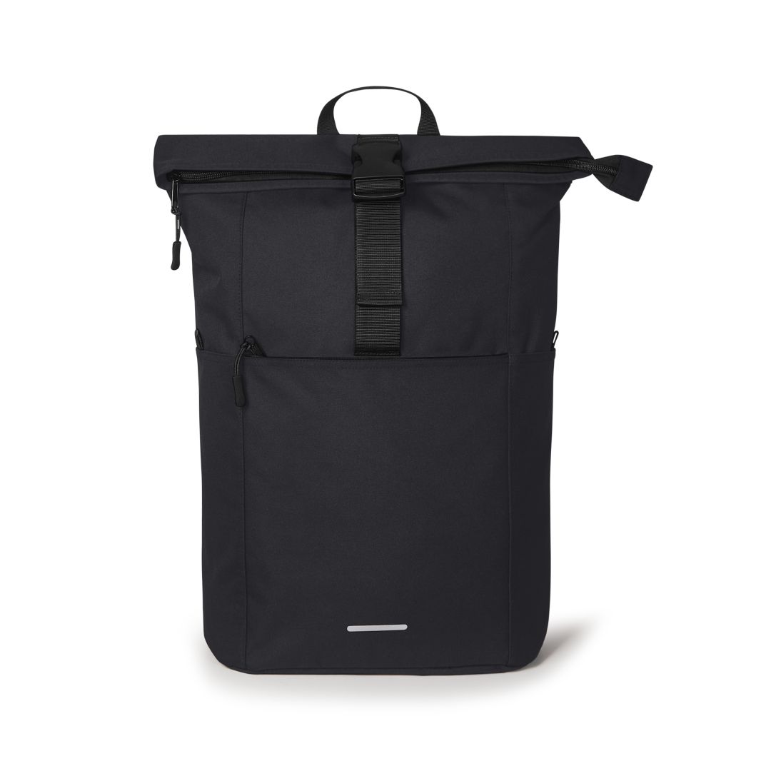 Certainly in terms of price. Otherwise, the backpack offers full features to be proud of. Whether as a prize or merchandise for universities, smart young brands or simply for price-conscious brands: with the BASIC, they present themselves in a contemporary and surprisingly versatile way. First of all, the outer material of this roll-top backpack is made from recycled material. It also offers space for documents and many other practical items in the slide-in compartment. The BASIC is also a pleasure to use every day, with all sorts of features such as the attractive zip sliders, the bright reflective print, the user-friendly flaps, the extra handle, the practical side pockets... and with an airtag pocket that always ensures that it is easy to find.