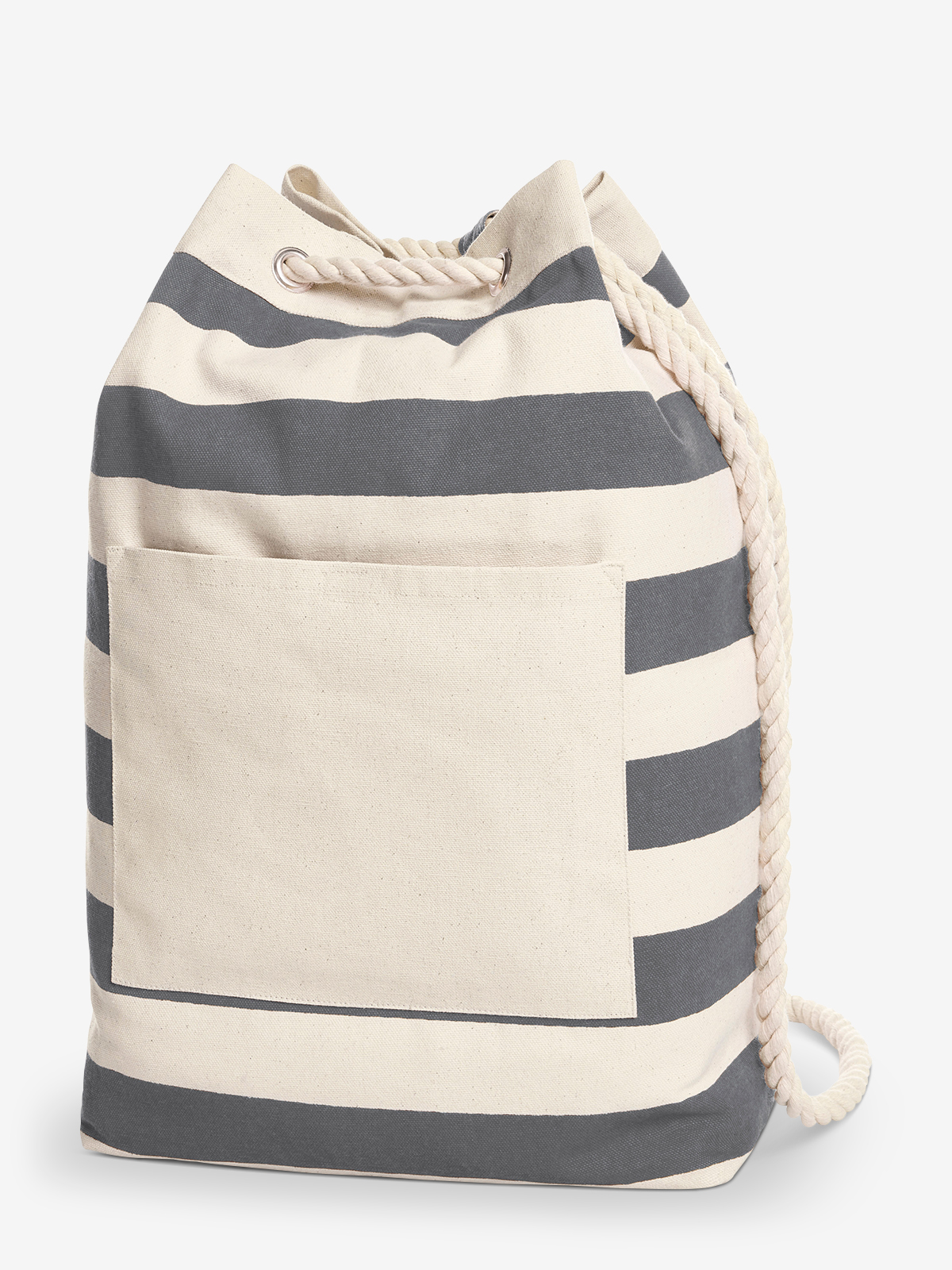 City, beach or studies: with the backpack BEACH, excursions and everyday life are simply cooler. Its coloured block stripes are a breath of fresh air, naval and casual. Appropriately enough, the BEACH looks like an iconic item; the kitbag. Eyelets and straps made from thick cotton cord also contribute to this impression. However, this is actually a backpack, which is comfortable to carry, as we have cut the rear of this item especially to make it straight, ensuring a perfect fit. The inside of the BEACH backpack will also convince you, thanks to the Oekotex 100 standard. Now you can just wander off!