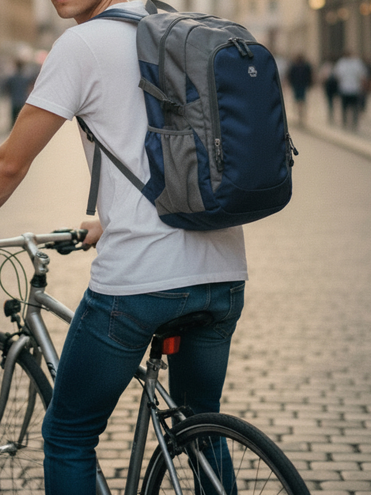 large main compartment with flat pouch; lateral mesh pockets and straps; big zipper front pocket with insert pouches and headset opening; beautifully designed and padded shoulder straps