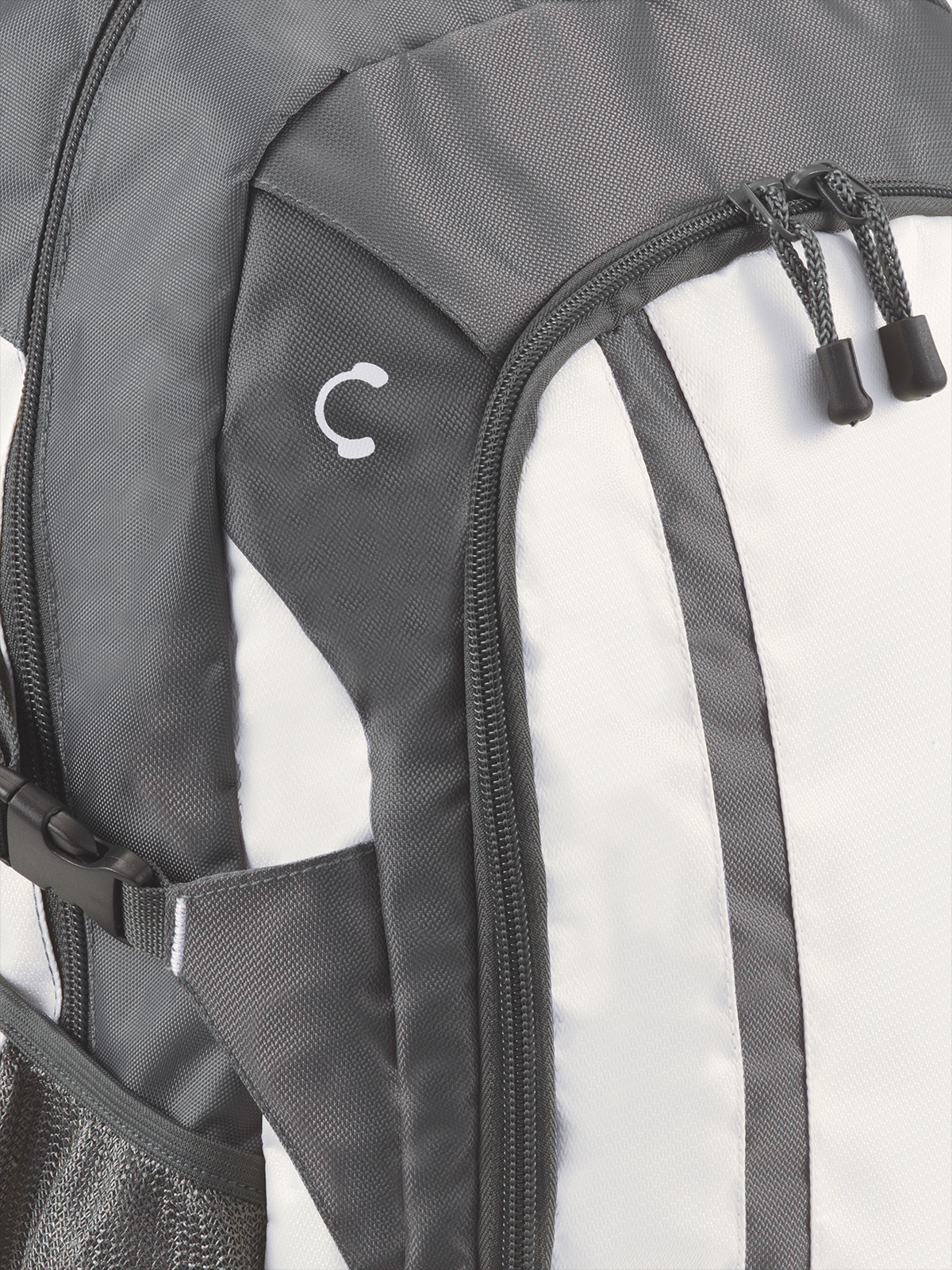 large main compartment with flat pouch; lateral mesh pockets and straps; big zipper front pocket with insert pouches and headset opening; beautifully designed and padded shoulder straps
