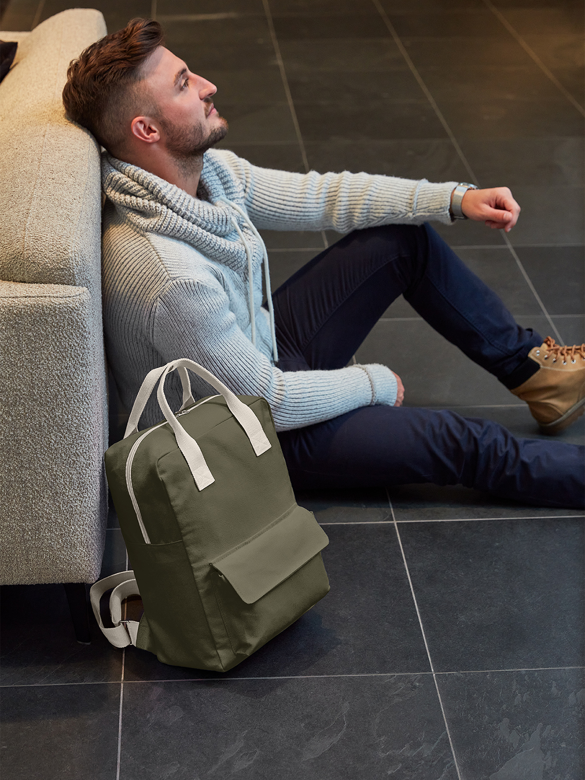 The cut and shape of this cotton backpack is legendary and extremely popular. The straight cut shows its edgy side, whilst the two handles literally round off our backpack LIKE. A charming detail: they can be connected by a metal press stud. The shoulder straps are also generously equipped with a metal buckle for adjustment. Another highlight of this young bag with the stuff to become a classic is the front pocket: Due to its extra depth, it can store things neatly and is closed by a Velcro fastener. The main bag has a 2-way zip and also plenty of space. All in all, a feather weight that creates beautiful accentuation with its natural coloured straps.