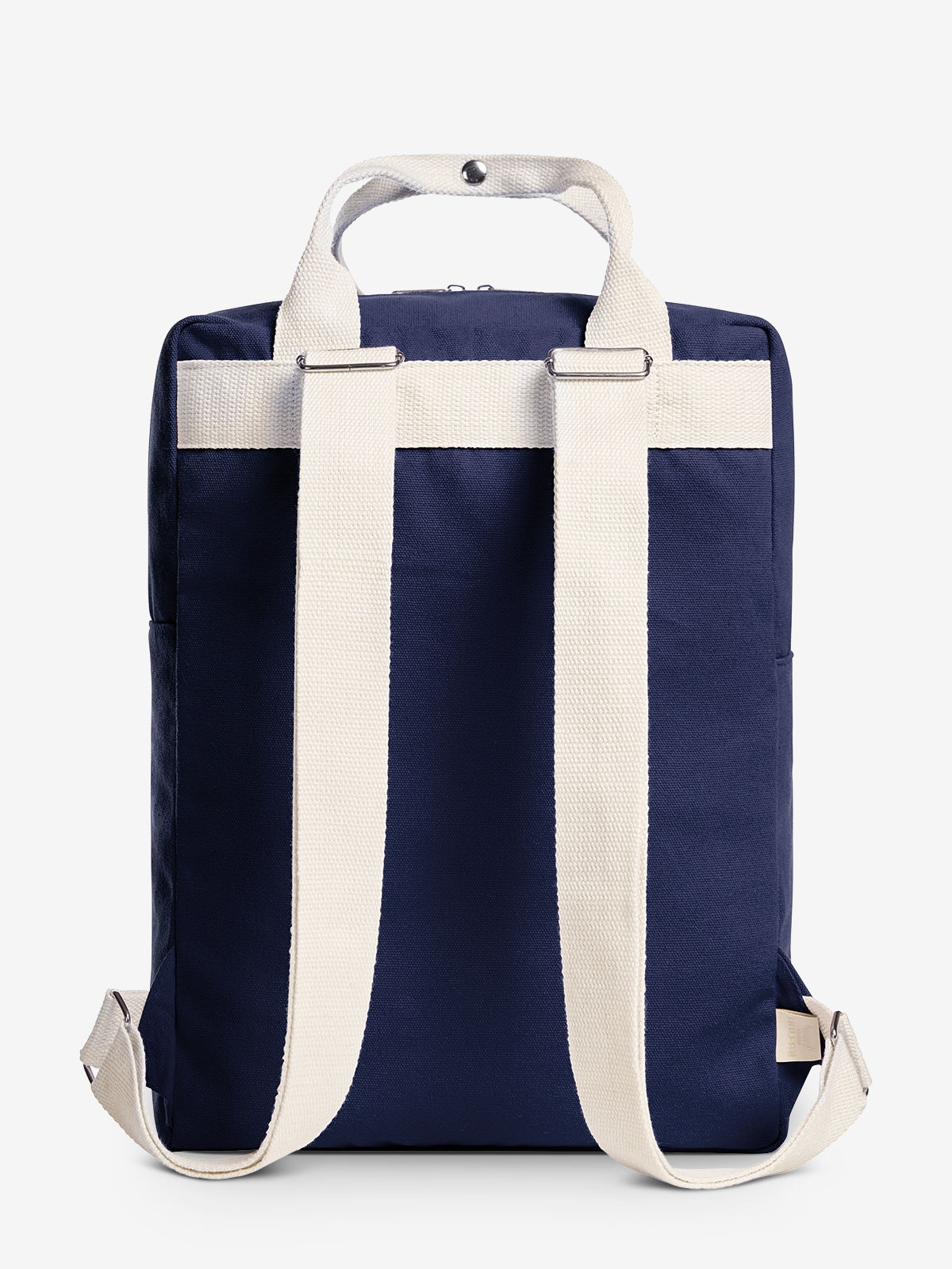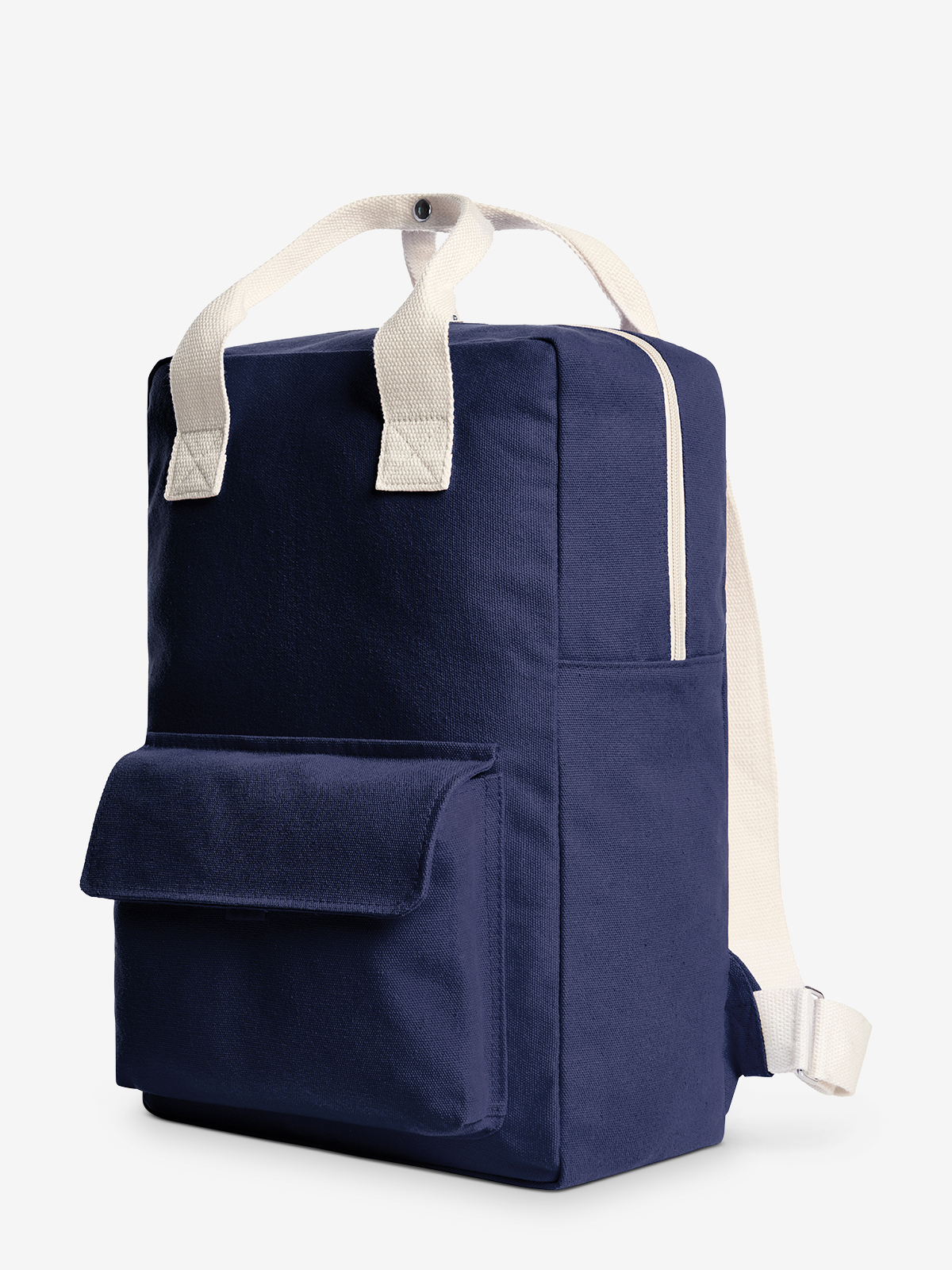 The cut and shape of this cotton backpack is legendary and extremely popular. The straight cut shows its edgy side, whilst the two handles literally round off our backpack LIKE. A charming detail: they can be connected by a metal press stud. The shoulder straps are also generously equipped with a metal buckle for adjustment. Another highlight of this young bag with the stuff to become a classic is the front pocket: Due to its extra depth, it can store things neatly and is closed by a Velcro fastener. The main bag has a 2-way zip and also plenty of space. All in all, a feather weight that creates beautiful accentuation with its natural coloured straps.
