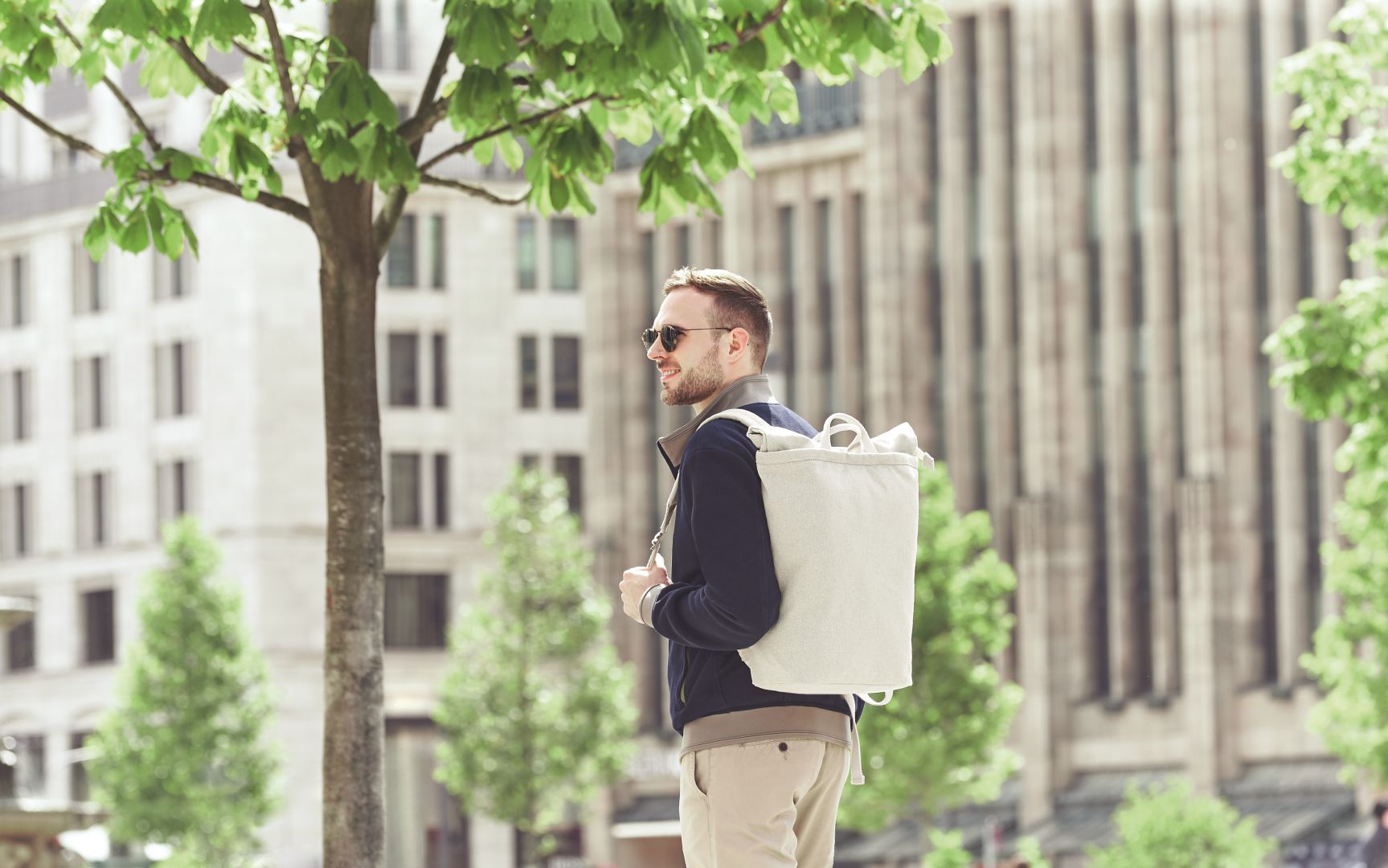 The bucket bag is one of the classic and yet current shapes of bag: this means that the bag is filled like a basket or bucket from the top. Practical when travelling, yet the LOOM backpack is well ahead of its shapely role models: on one hand it consists of a pleasant cotton-polyester mix in a natural and beautiful sandy tone. On the other, it offers extra options for carrying and closing. There are the two handles, a padded shoulder strap, a padded back part, a main compartment with zip and buckle for the wrap function … what more could you want?