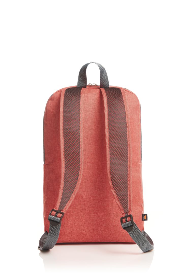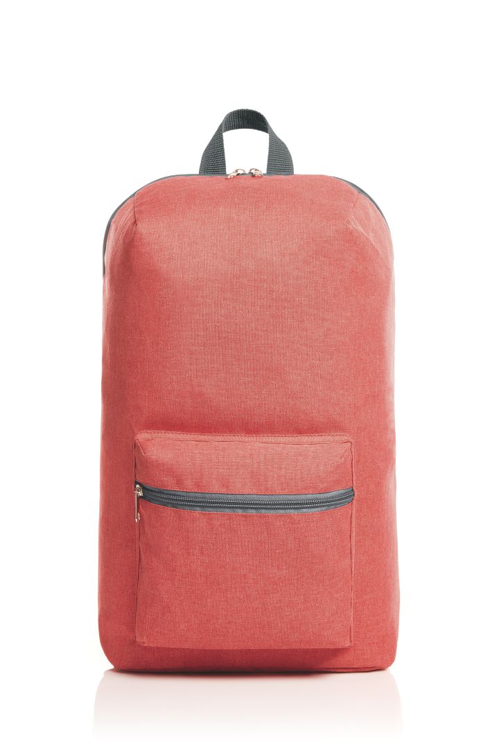 light backpack; main compartment with 2-way zipper; front zipper pocket; inside zipper pocket; adjustable, breathable carrying system; handle; folding and stowing function