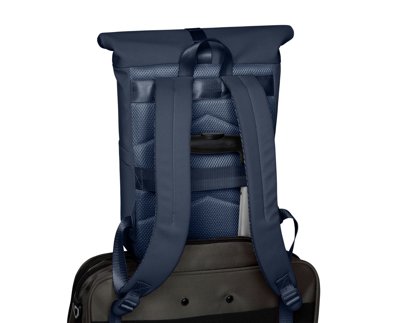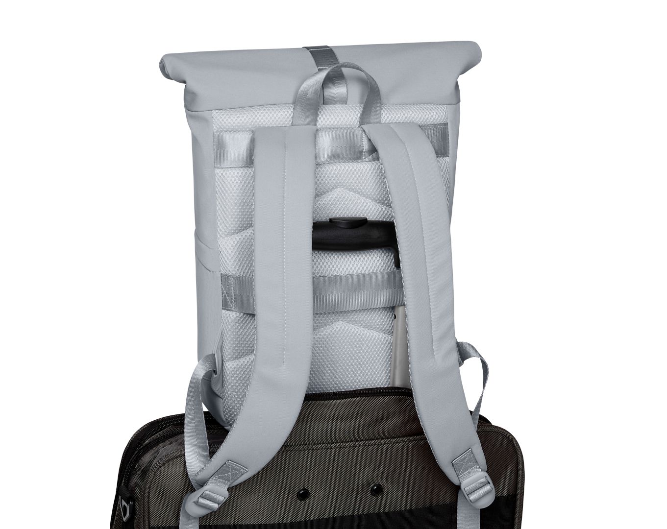 Small is relative. This backpack is only an S version in comparison to its series partner. By itself, it is not really small, but a full quality backpack perfect for many everyday situations. The first thing that makes it a favourite companion is its very pleasant textile material, which feels nice to touch. The tone-on-tone colour design also makes it a feast for the eyes. Everything here simply matches in terms of colour, from zips and straps to the trolley loop and the mesh fabric on the back. Light-coloured contrasting lining only radiates on the inside for better orientation. This is where you will find a padded compartment big enough for small laptops or tablets. And if there are larger items to be transported, the STAR S still has enough capacity at the top. Otherwise, the attractive metal buckle holds everything together to the desired packing size.