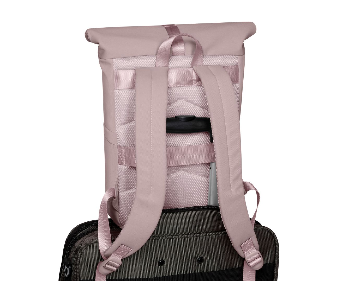 Small is relative. This backpack is only an S version in comparison to its series partner. By itself, it is not really small, but a full quality backpack perfect for many everyday situations. The first thing that makes it a favourite companion is its very pleasant textile material, which feels nice to touch. The tone-on-tone colour design also makes it a feast for the eyes. Everything here simply matches in terms of colour, from zips and straps to the trolley loop and the mesh fabric on the back. Light-coloured contrasting lining only radiates on the inside for better orientation. This is where you will find a padded compartment big enough for small laptops or tablets. And if there are larger items to be transported, the STAR S still has enough capacity at the top. Otherwise, the attractive metal buckle holds everything together to the desired packing size.