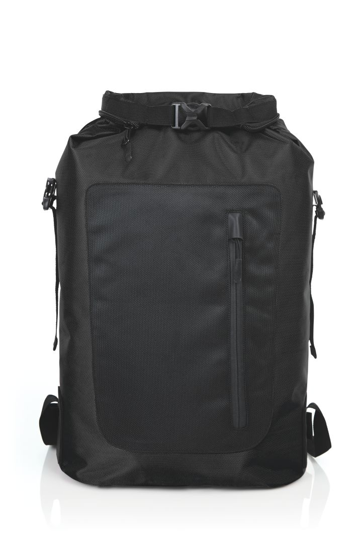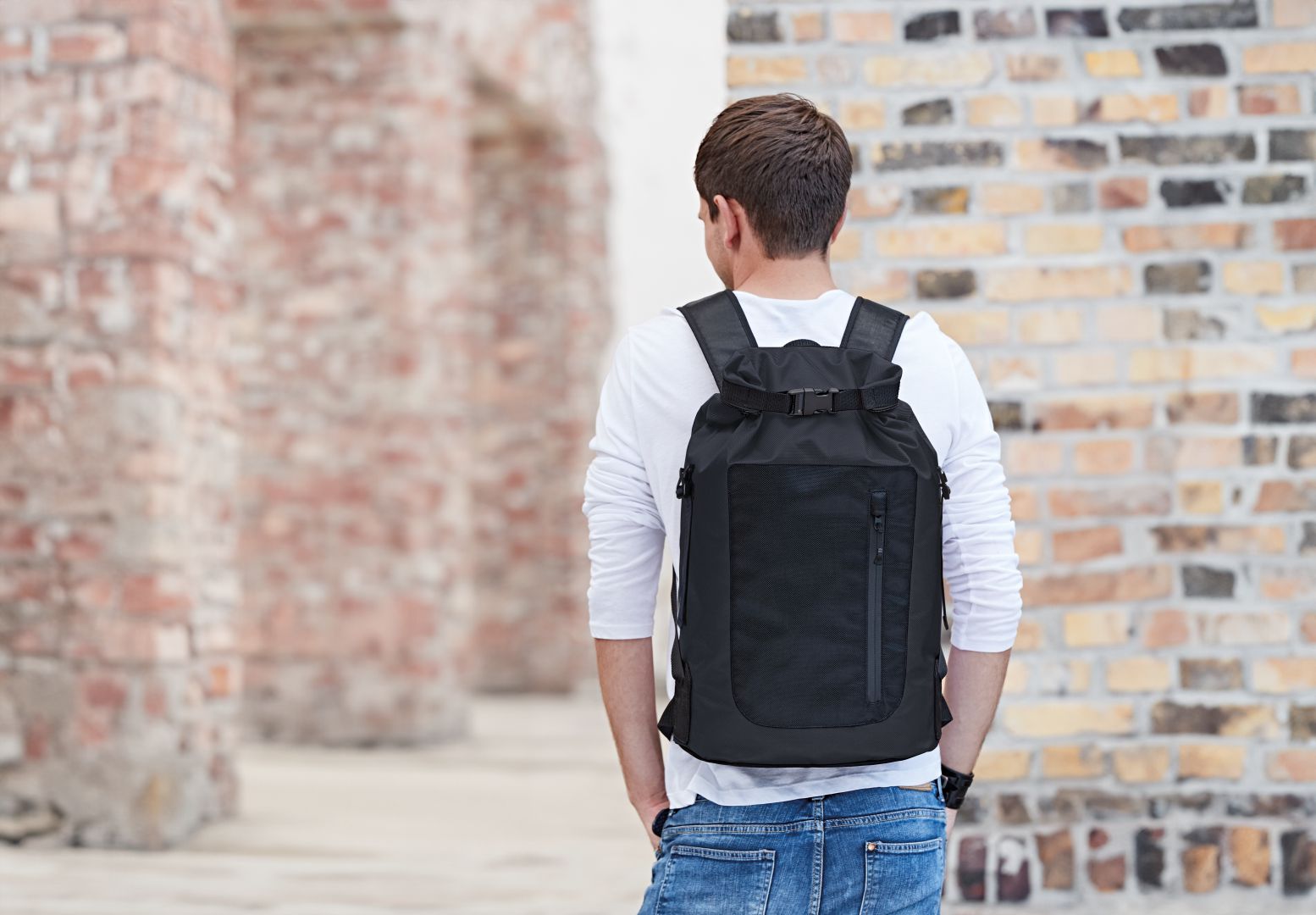 This is more than a fresh breeze in styling, it is a STORM. The backpack impresses with its urban outdoor look. The robust 1680 material has a slightly technical shimmer and the colour combinations ensure a dynamic-sporty appearance. This is a bag for individualists who demand a little more in terms of function. Although the roller backpack STORM is so streamlined, it has several special features on offer. This is the zip for one, or rather the 3 types of closure: roll-up closure at the top, side or by zip only. The latter has the advantage that the bag can be packed up to the very top. The carrying system that awaits with deep padding as well as a hip and chest strap is just as comfortable. And we have one more little interesting thing: alongside the zipper front pocket, the backpack STORM offers a concealed compartment on the back. It protects cards, money and smartphone against thieves.