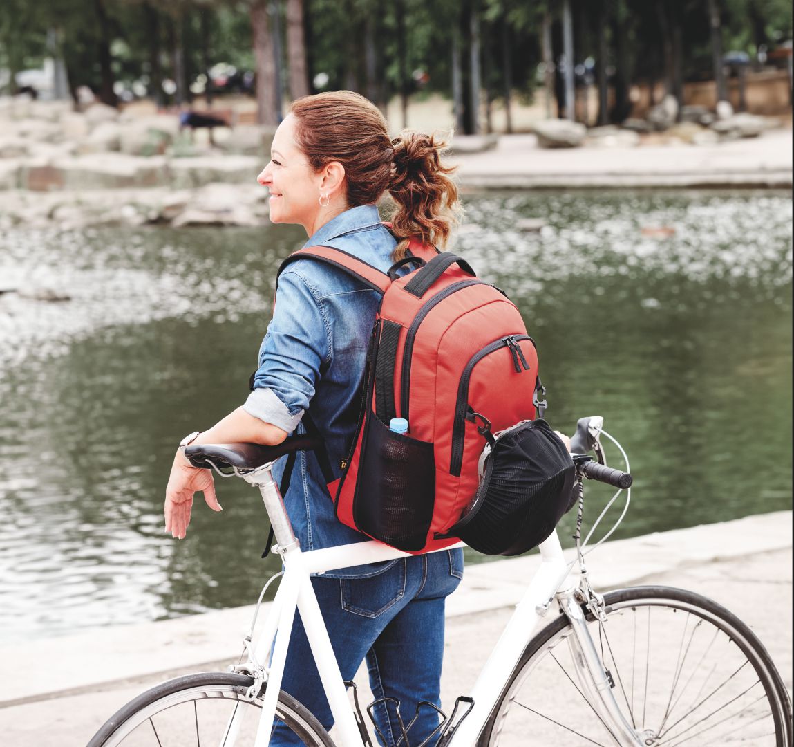 classic all-rounder for leisure time; large main compartment with 2-way zipper; flat pocket; volume expansion; 2-way zipper front pocket; bottom pocket with retractable mesh; elastic mesh side pockets; two handles; carrying strap; adjustable chest strap; padded, length-adjustable carrying system