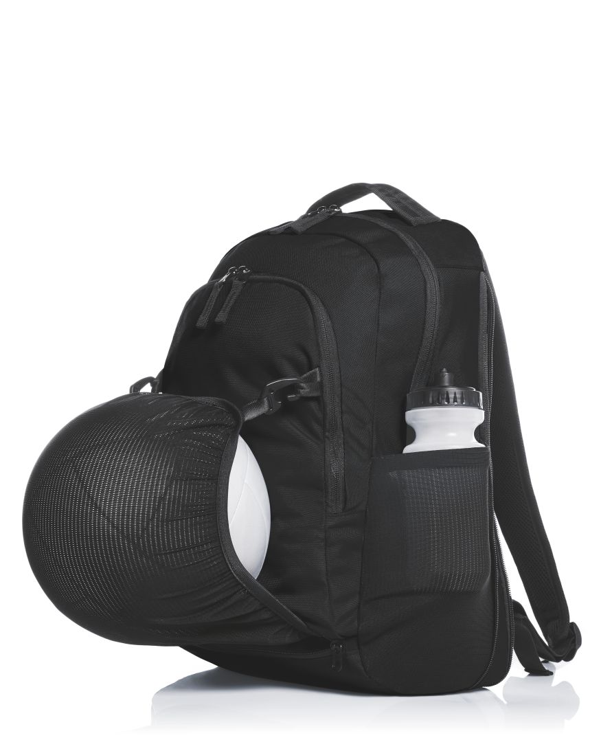 This backpack really does show its best angle from every side. The sporty TEAM offers handles, pockets and has useful features all over it. One handle, for example, is not positioned as usual at the top of the backpack, but rather at the side which is practical when you are removing it from a car boot or luggage rack. It is also multitalented in terms of volume. The main compartment can be expanded quite substantially using a zipper. Extra space is provided for a helmet or ball under the mesh net and when not being used, it can simply be inserted back into the bottom compartment. And the carrying system offers comfort through the chest strap and pads. Simply a delight from top to bottom!