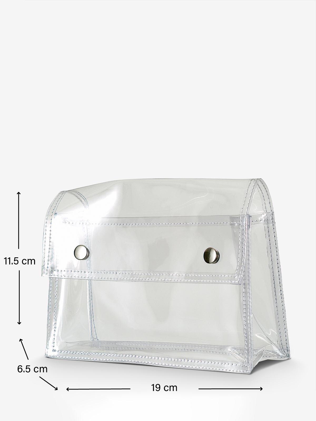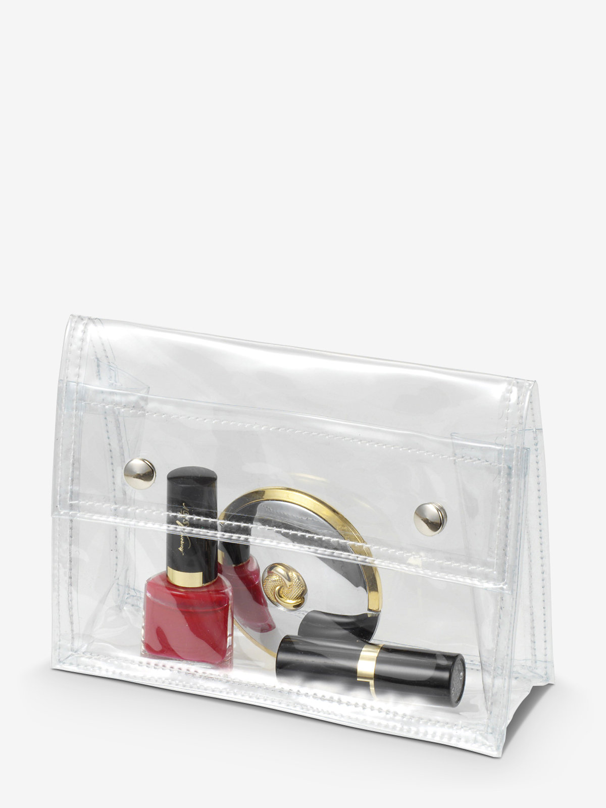 Women show their sense with the bag with press buttons UNIVERSAL. Be it lipstick, nail polish or jewellery - everything has its place in this handy little bag. It is the perfect size to fit in a lady's handbag. Metal press buttons close the transparent bag and guarantee that nothing falls out. The front of the bag can be used for a printed single-colour logo.