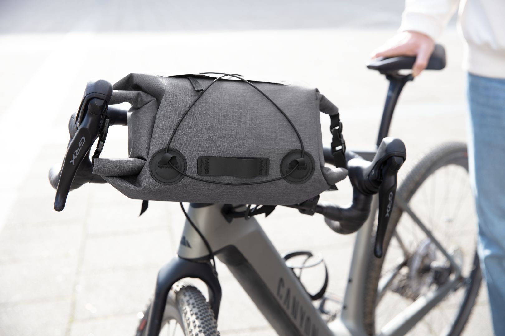 Cycling for everyone who likes to take it easy. No need for a baggage carrier if you’re travelling light – the handlebar is more than enough. At least for carrying lightweight items like a rain jacket, wallet, a snack for en route or a mobile phone. The CYCLE handlebar bag provides practical, rainproof storage for all this, thanks to a roll closure on both sides and welded seams. And if you decide at the last minute to take a hat, jacket or map with you, store them under the extra elasticated straps where they’re always close at hand. The strap system allows the CYCLE to be fitted easy to any handlebar. Smart extra: a reflector or bicycle light can be attached to one of the straps.