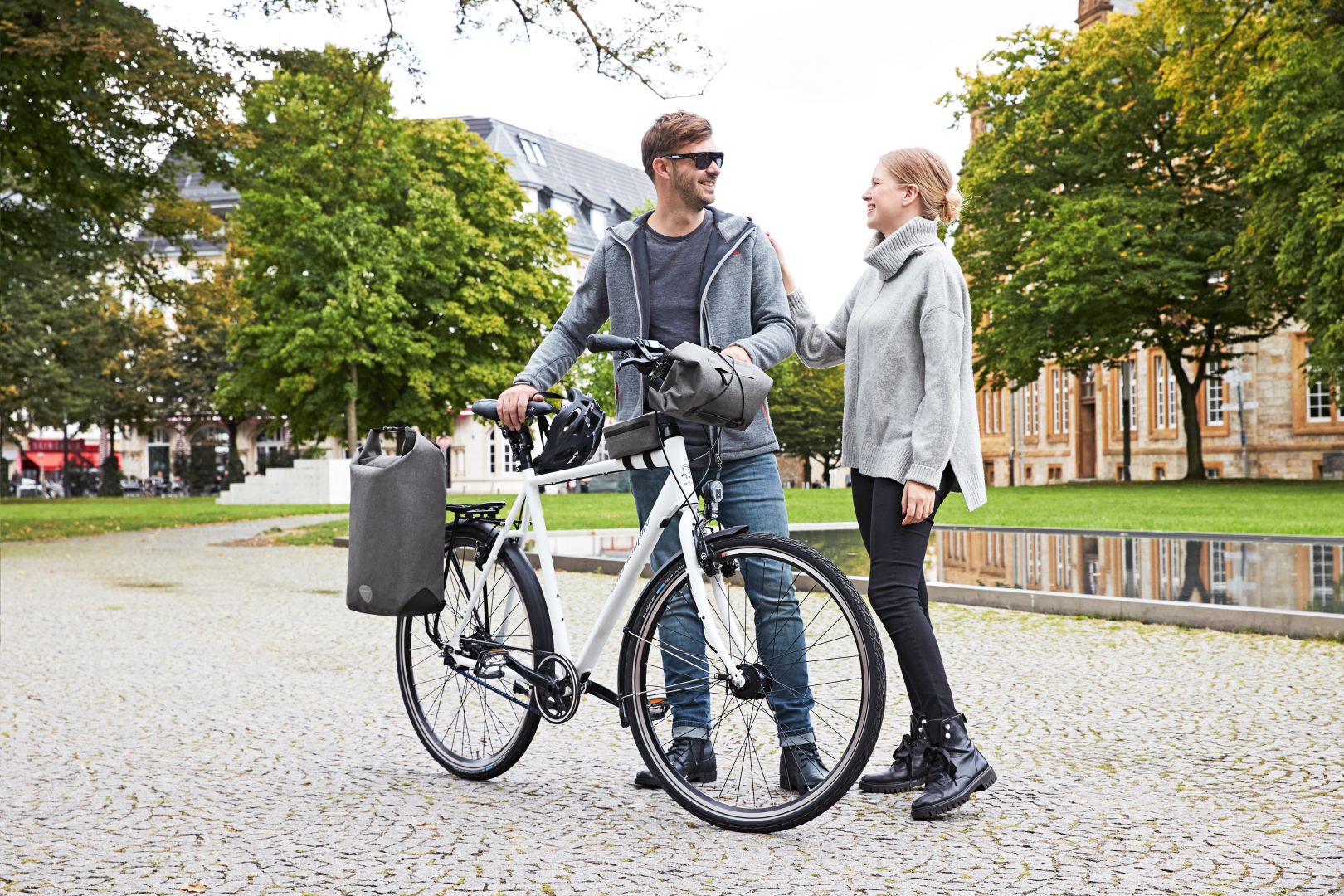 Put a CYCLE on your bike and off you go. With this bicycle bag, you can relax totally as you tick off those crucial questions before you start out, like: Is it going to rain? Who cares, because the CYCLE bike bag with its roll closure and welded seams provides perfect protection from showers. Can I get my shopping in as well? Naturally! The bag offers stacks of storage space – or why not take two at once and be perfectly equipped even for short cycle trips. And will the CYCLE even fit my bike? But of course. All you need is a standard baggage carrier. The klickfix® holder system is individually adjustable and can be further secured with a twist lock and additional Velcro fastener. For super-relaxed rides.