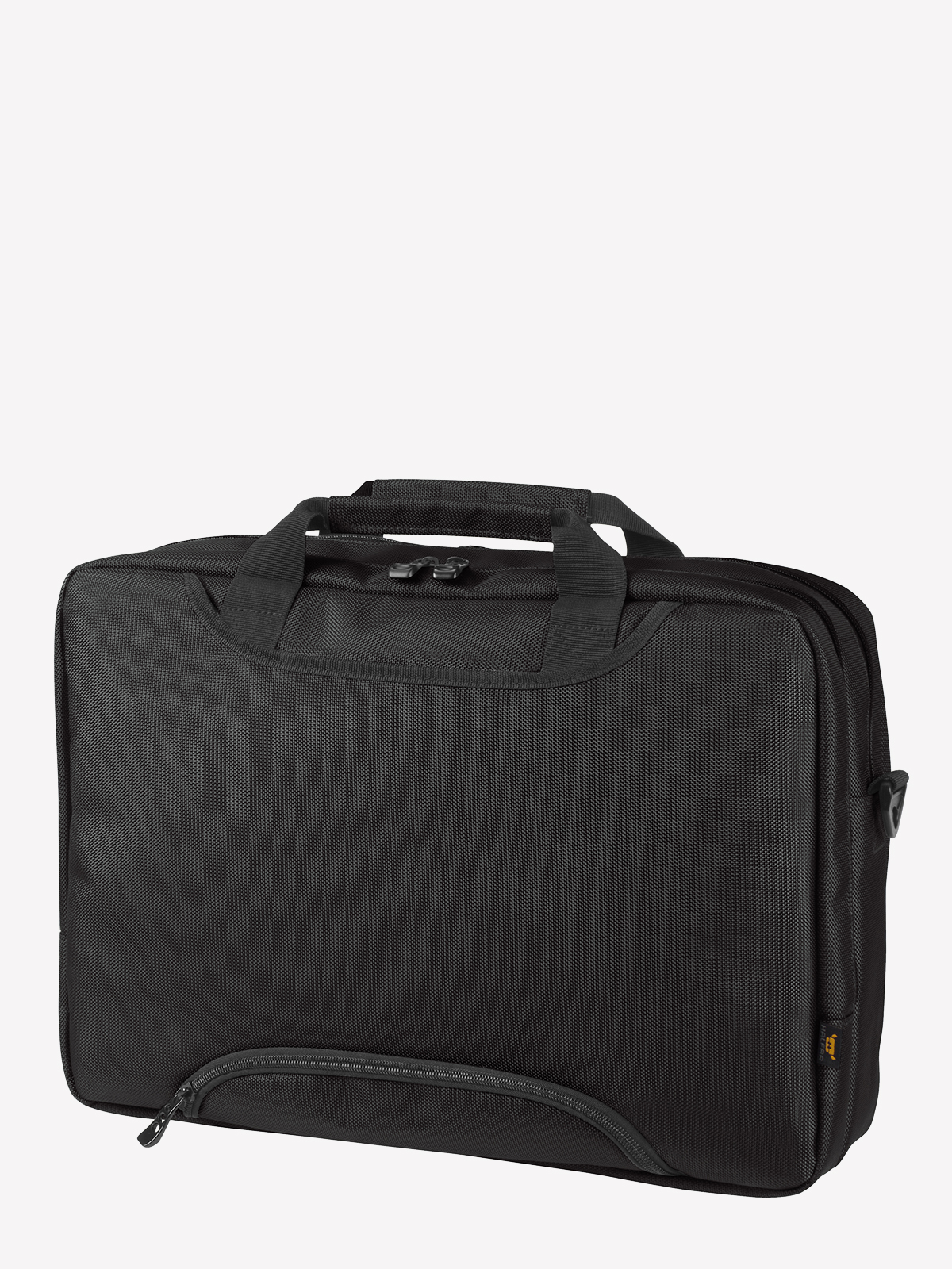 padded main compartment with two-way zipper, padded notebook compartment with elastic holder; zipper front pocket with organizer features; zipper front pocket; handles; removable, double-sided adjustable shoulder strap