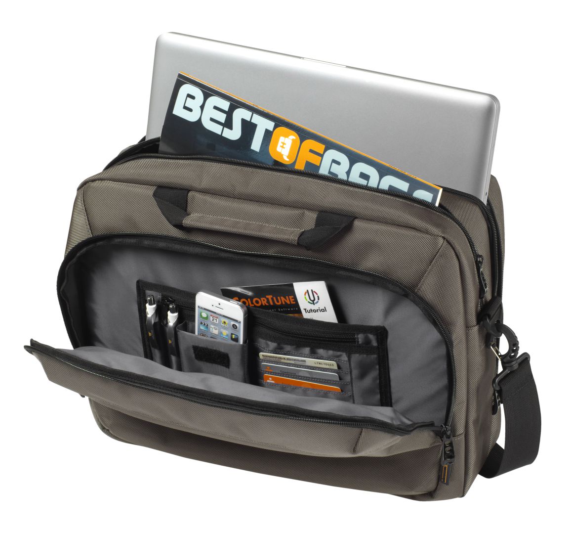 With this bag your stocks are always looking good when it comes to fashion. No matter whether you prefer classical values or unconventional speculation: the MISSION high quality business bag with its timeless, no frills shape and elegantly structured material, is extremely pleasing. The muted colours radiate in a reserved way and the outstanding practical qualities of this business bag are revealed during use. A lot can be stowed away in the cushioned main pocket, the notebook pocket with support and the main zip pocket with organiser elements. And the handle and shoulder strap ensure that the way up the career ladder is a bit more comfortable.