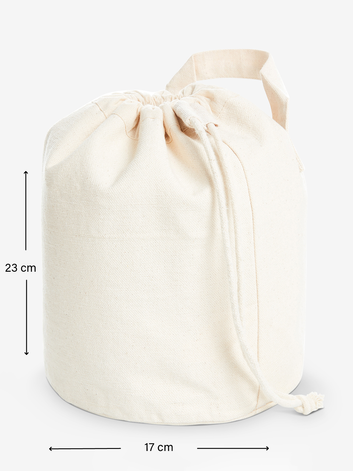 The bag is one of the simplest forms of carrier there is and one of the most diverse. A bag can be used for all manner of things - its contents determine the purpose. We produce our ORGANIC cotton bag from particularly heavy organic cotton. The material makes the bag stand up well. This is a positive aspect, as folding over the edge of this bag transforms it instantly into a basket. Whether for your Sunday rolls or for sewing accessories whatever you prefer. And you can also choose whether you want to use the ORGANIC with the cord closure for cosmetic items or as a laundry bag on your travels.