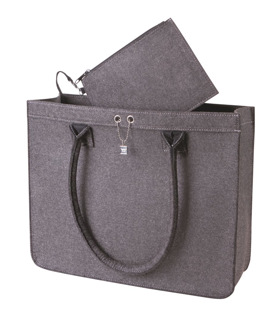 Great - the purse is included (unfortunately empty). For the high-quality felt city shopper ModernClassic is not just a stylish, attractive looker; it also has substance. A removable purse completes the wonderful shopping experience and ensures that your money is always safely stored. There is another really neat detail: the chain and pendant. Ideal for decorating with logos using doming - either in addition to an embroidered logo or as a subtle, puristic advertisement.
