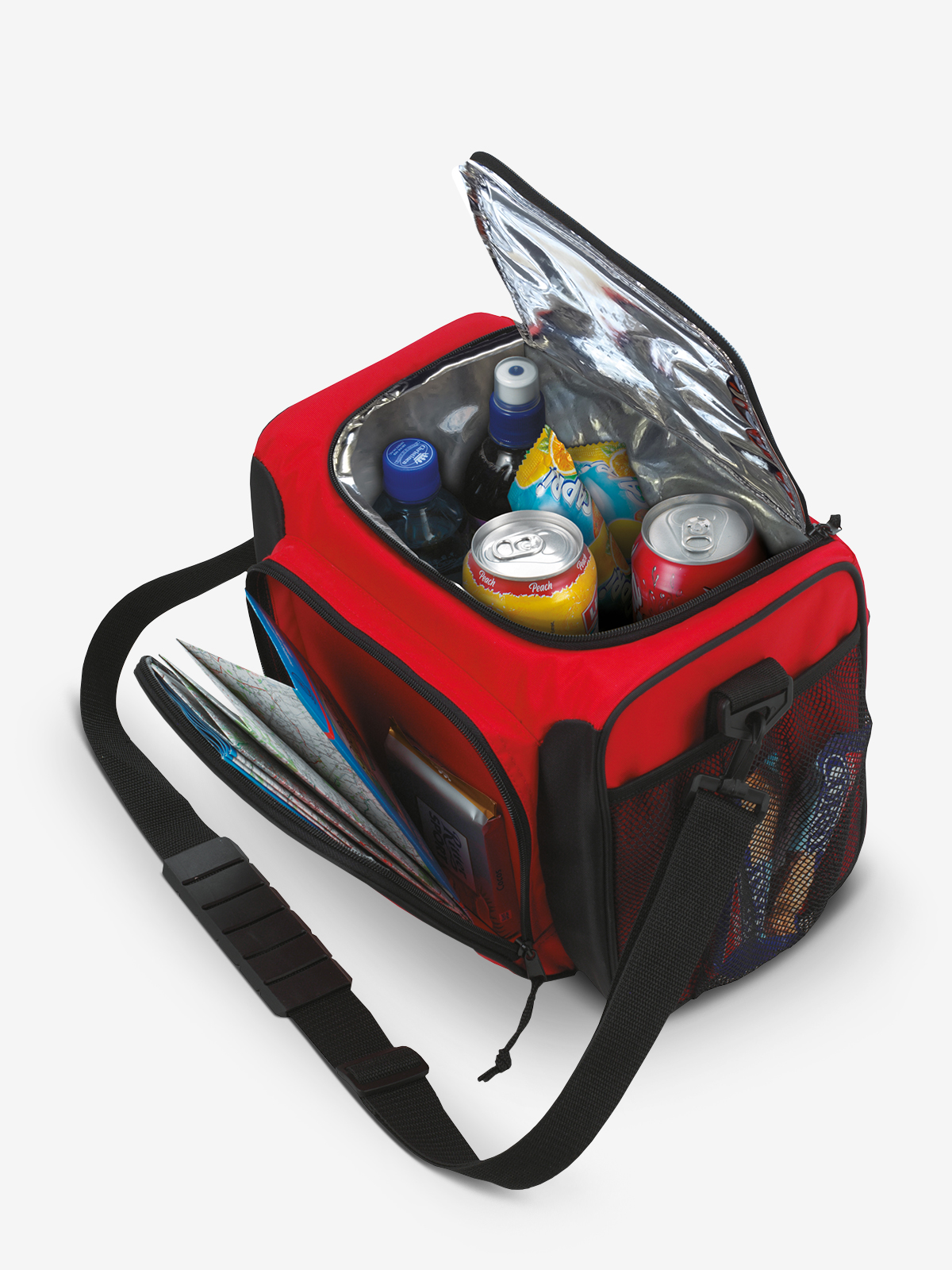 The cooler bag SPORT features everything that cyclists need: an attachment for the handlebars, a transparent card compartment and a main compartment to keep drinks and snacks nice and cool. The stylish cool bag for the bike also lives up to its name when it comes to the range of sporty colours available. Thanks to the many decoration options (silcscreen print, embroidery, transfer, doming), the handlebar bag is the ideal promotional item for the summer - and not just for cyclists.