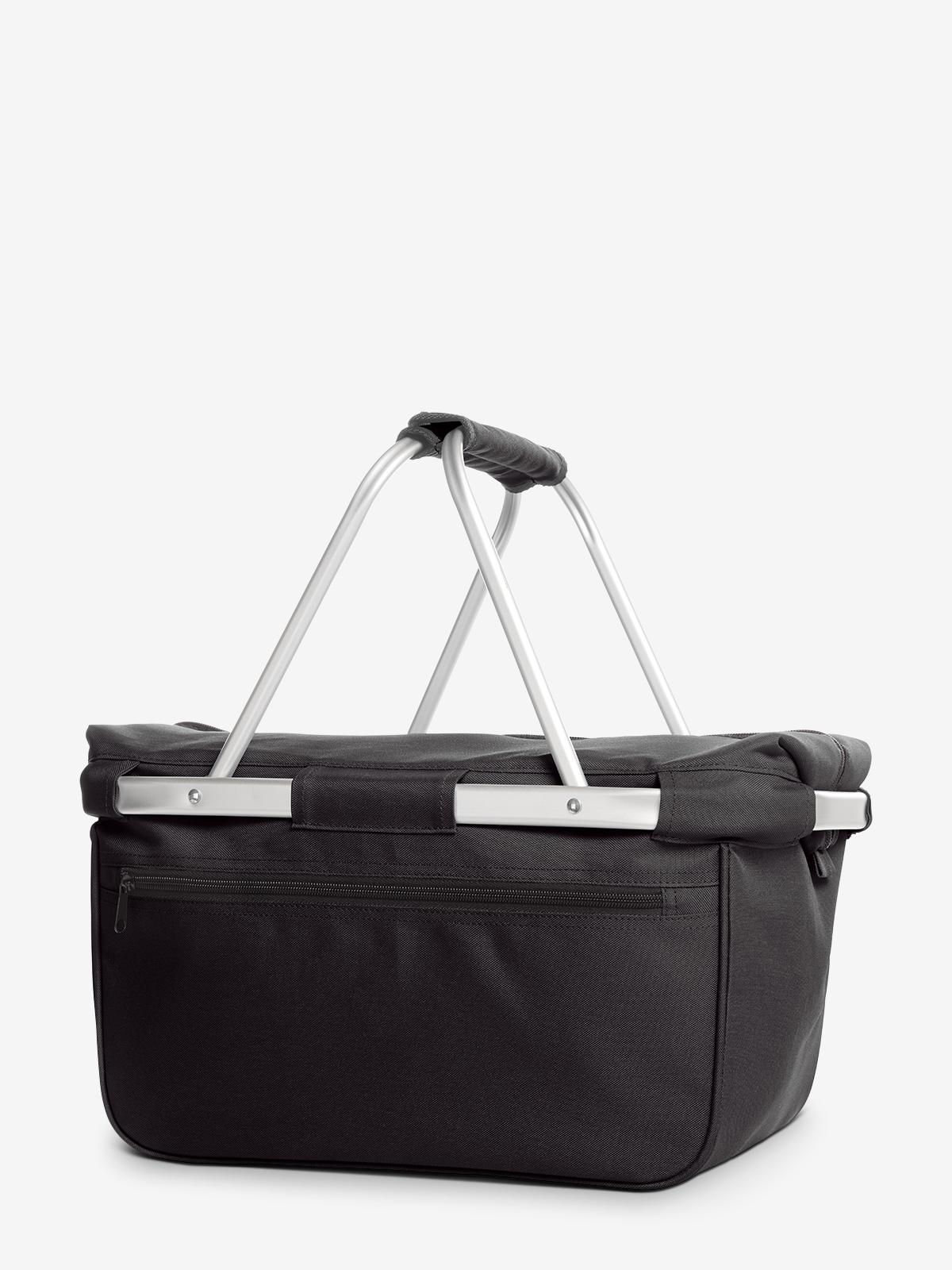 nicely-designed cooling basket with aluminium frame; main zipper compartment; front zipper pocket; magnetic cuff; inside washable; foldable