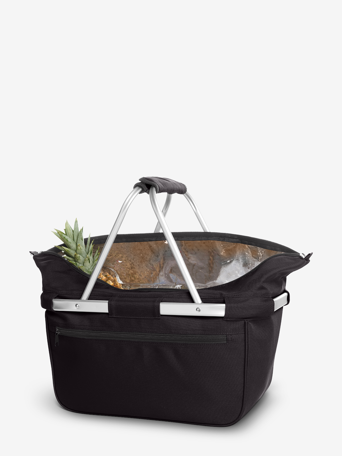 nicely-designed cooling basket with aluminium frame; main zipper compartment; front zipper pocket; magnetic cuff; inside washable; foldable