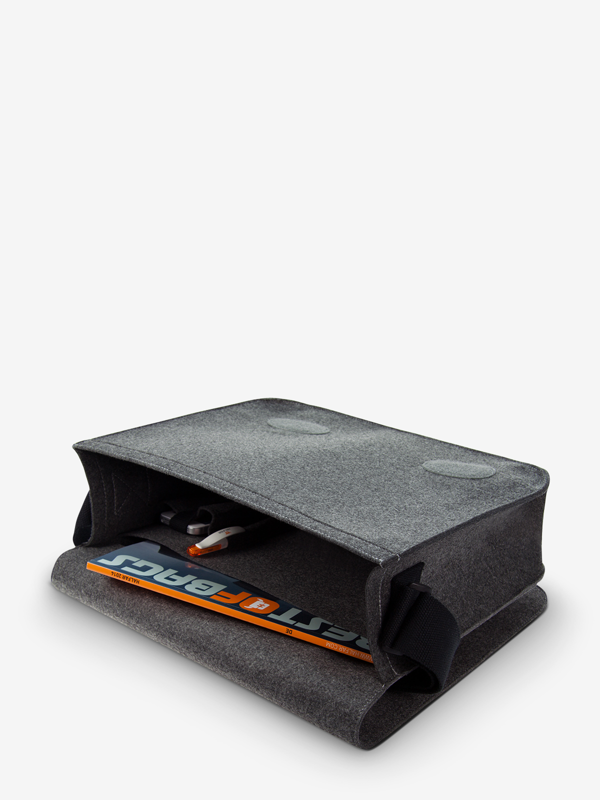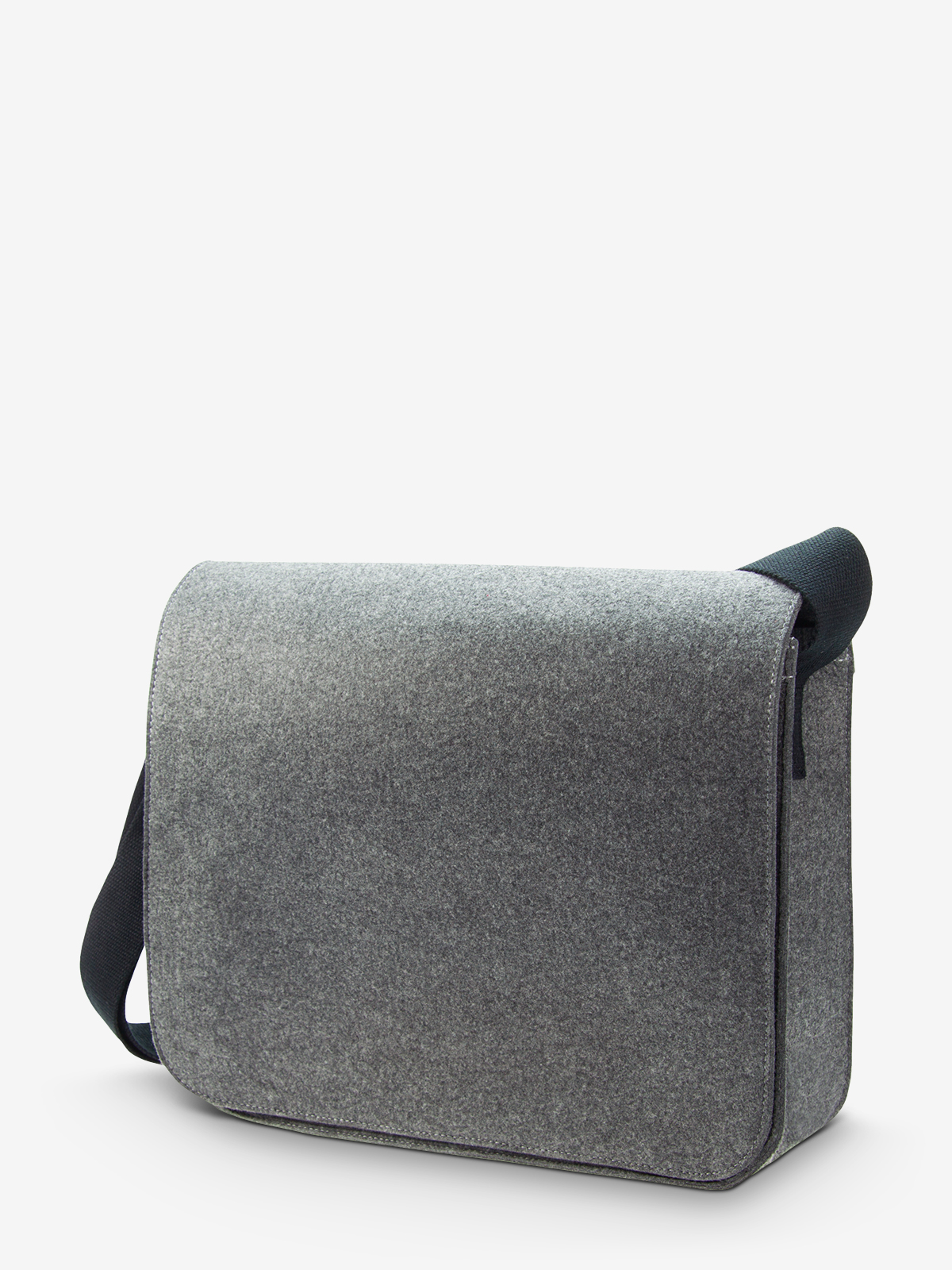 Let this bag captivate you with the elegant and expressive felt material; the straight contoured shape; the sportiness of the classic messenger bag; the casual, wide cotton strap. And now imagine your logo on it. It unfolds its effect in elegant stitching on the large front flap. Can you see it already? Then we are happy to make your vision come true.