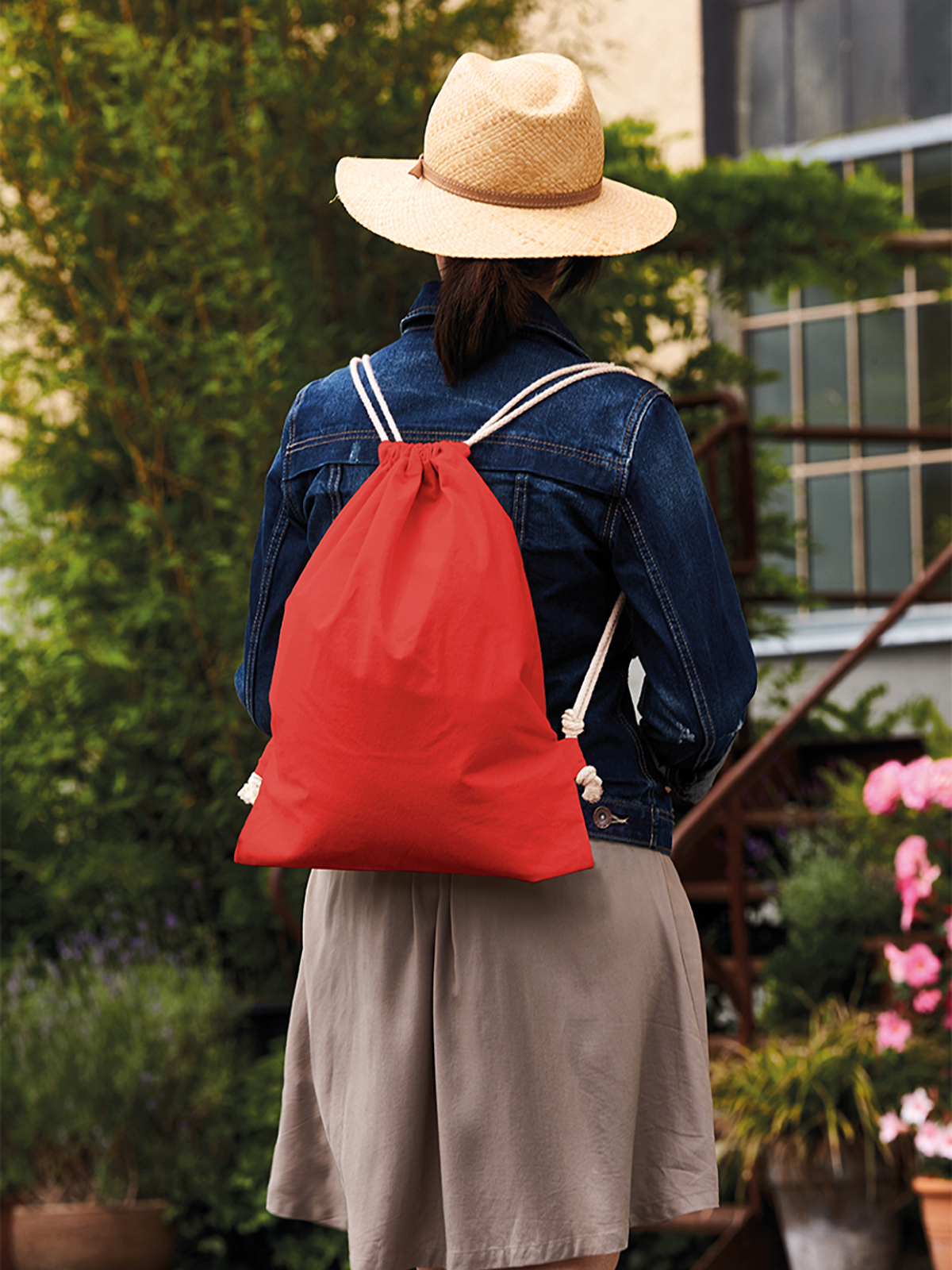 cotton drawstring bag; backpack with cord straps