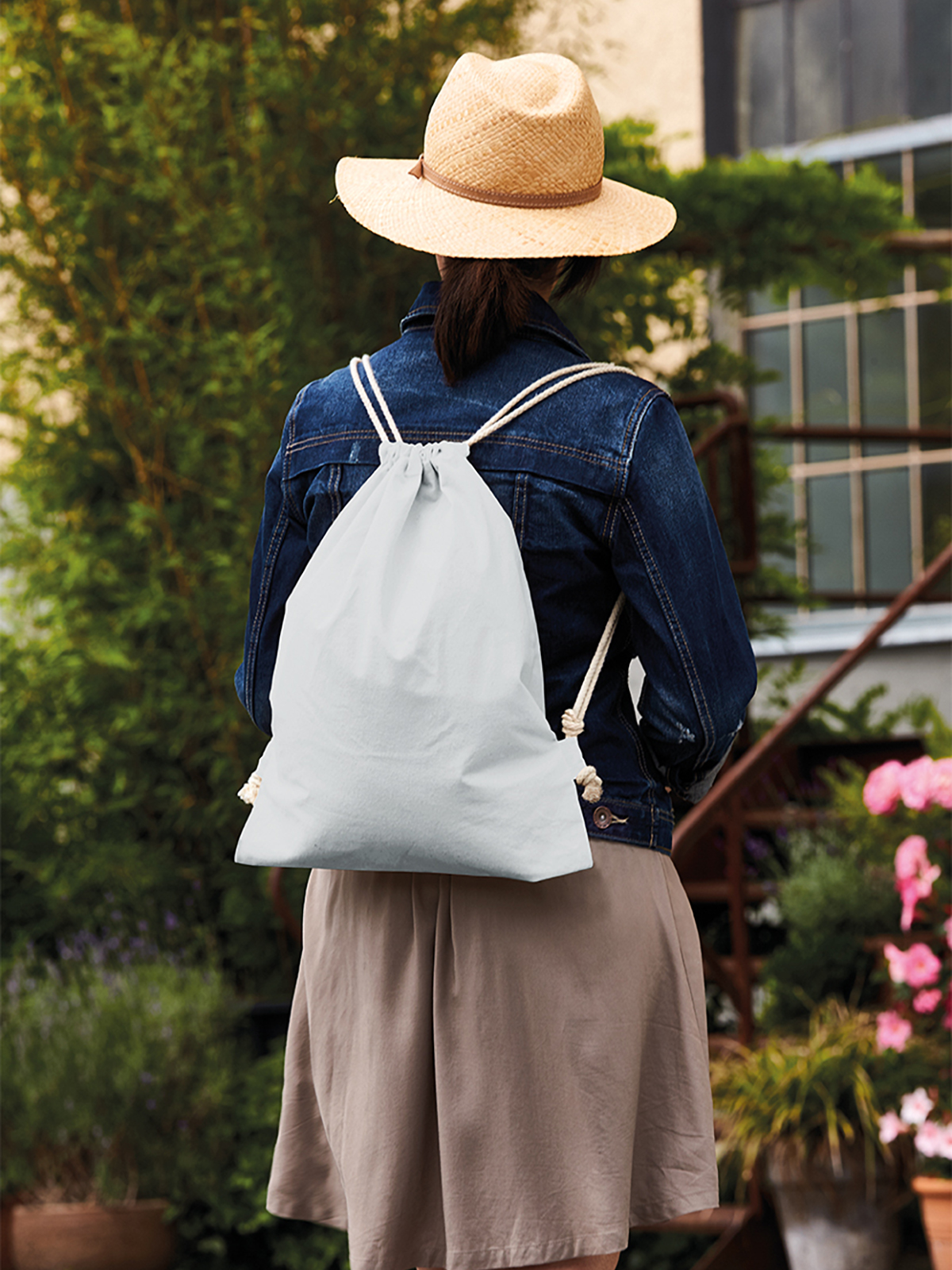 cotton drawstring bag; backpack with cord straps