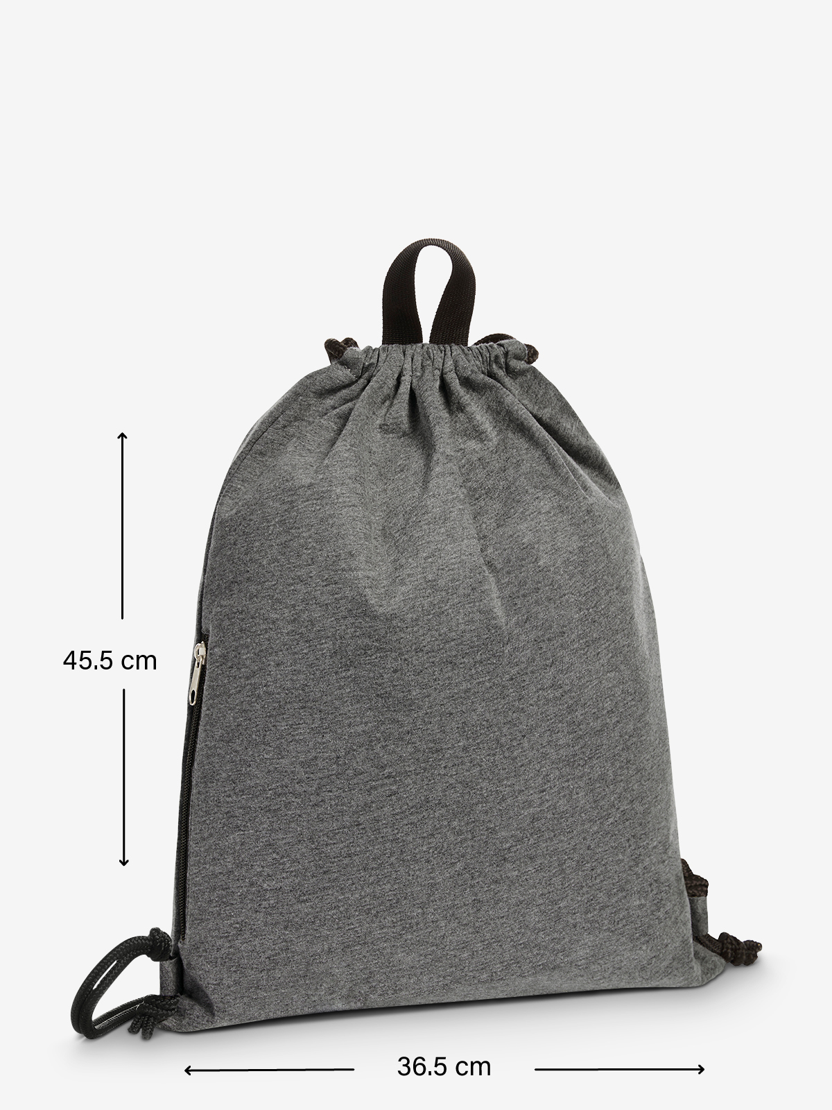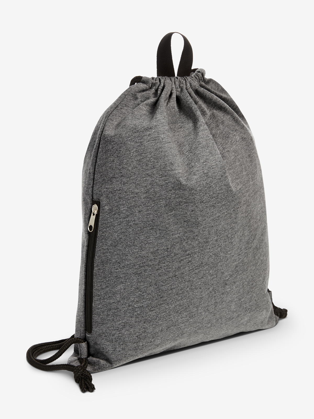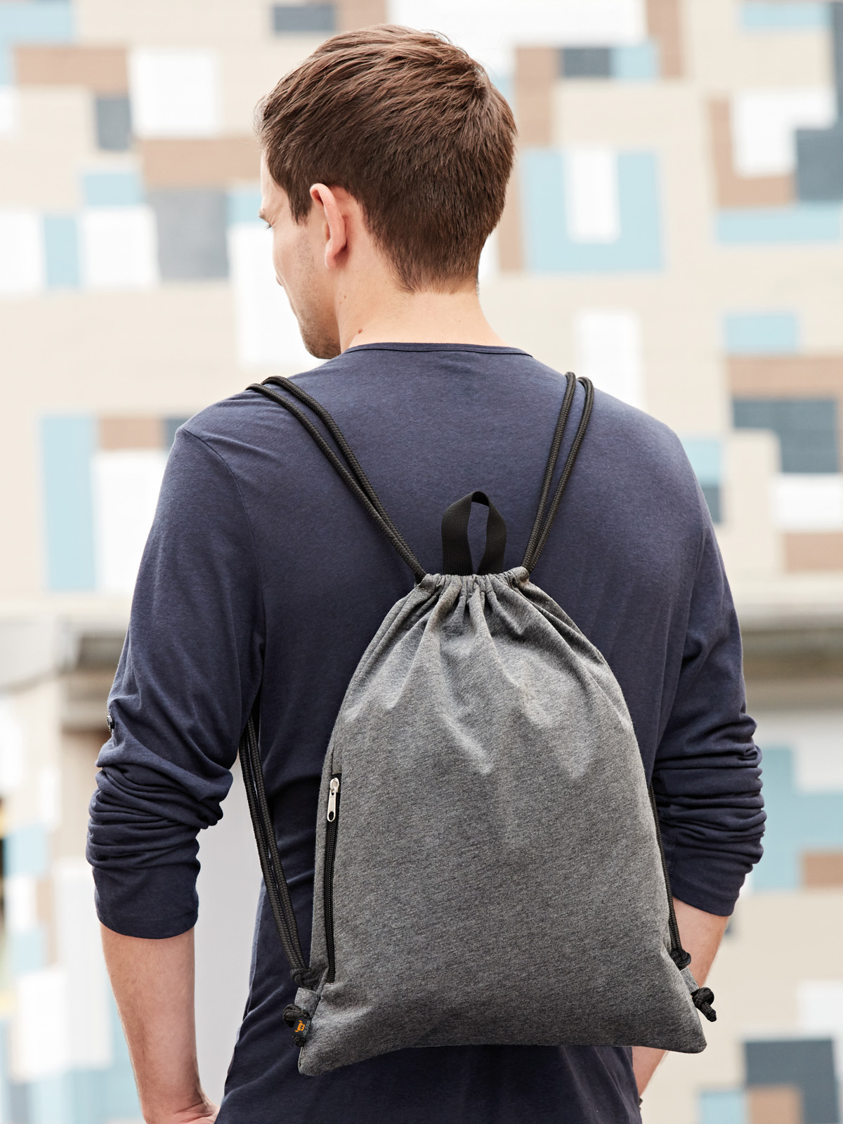 The style and character of a drawstring bag are mainly defined by two things: the material and the printing. Whilst you are free to choose the motif, we have made an elegant choice for you in the material: fine JERSEY. It feels exceedingly pleasant and it is soft and elegant, and thanks to a few little details, the drawstring bag can be upgraded with some features. The side zipper bag always keeps your mobile phone and wallet at hand. Plenty fits inside the large main compartment and the carrying loop means the JERSEY drawstring bag can be very comfortably picked up or hung up in the cloakroom. This bag is simply a clever move.