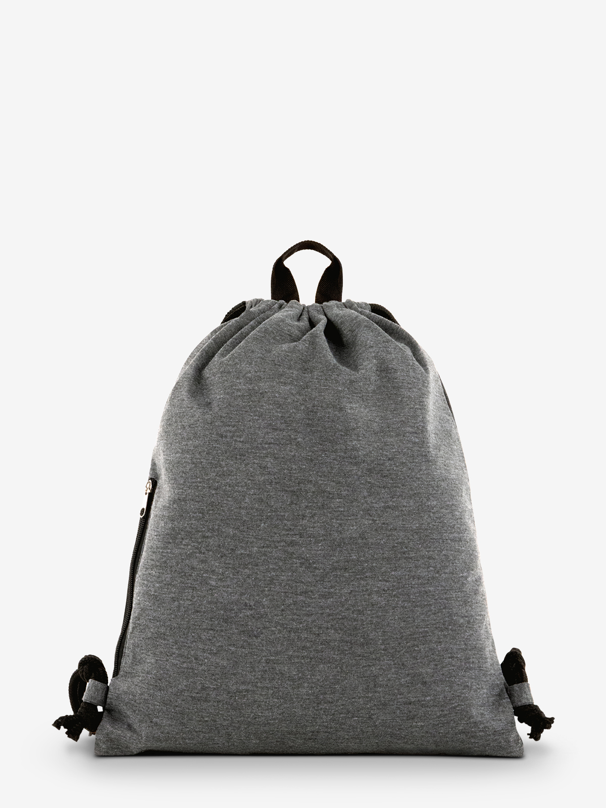 large drawstring bag made from fine jersey material which is pleasant to the touch; main compartment with side zipper bag; pull cord; carry loop