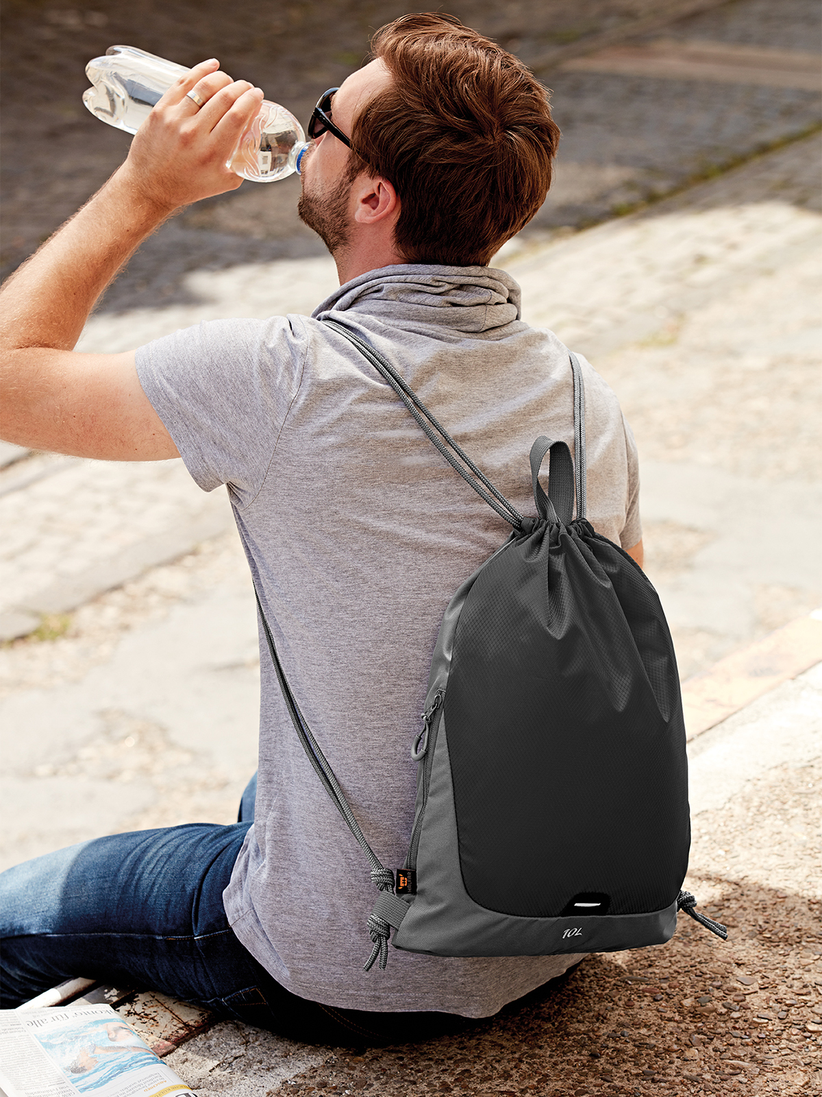 Do something for your sporty appearance; it is much easier than you think with the drawstring bag STEP. After all, the young and fashionable backpack radiates lots of freshness and dynamic with its two-colour design and the exciting material mix, and it surprises with some extra features. A reflector stripe underlines its athleticism whilst a zipper bag and a carrying loop increase functionality. The drawstring bag can always be there as the small and handy addition to the STEP family. Whether for cycling, skating or simply wandering around town: this drawstring bag really is a solution that is noticeably kind on the back.