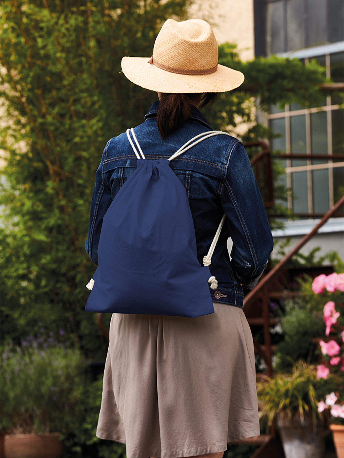 cotton drawstring bag; backpack with cord straps