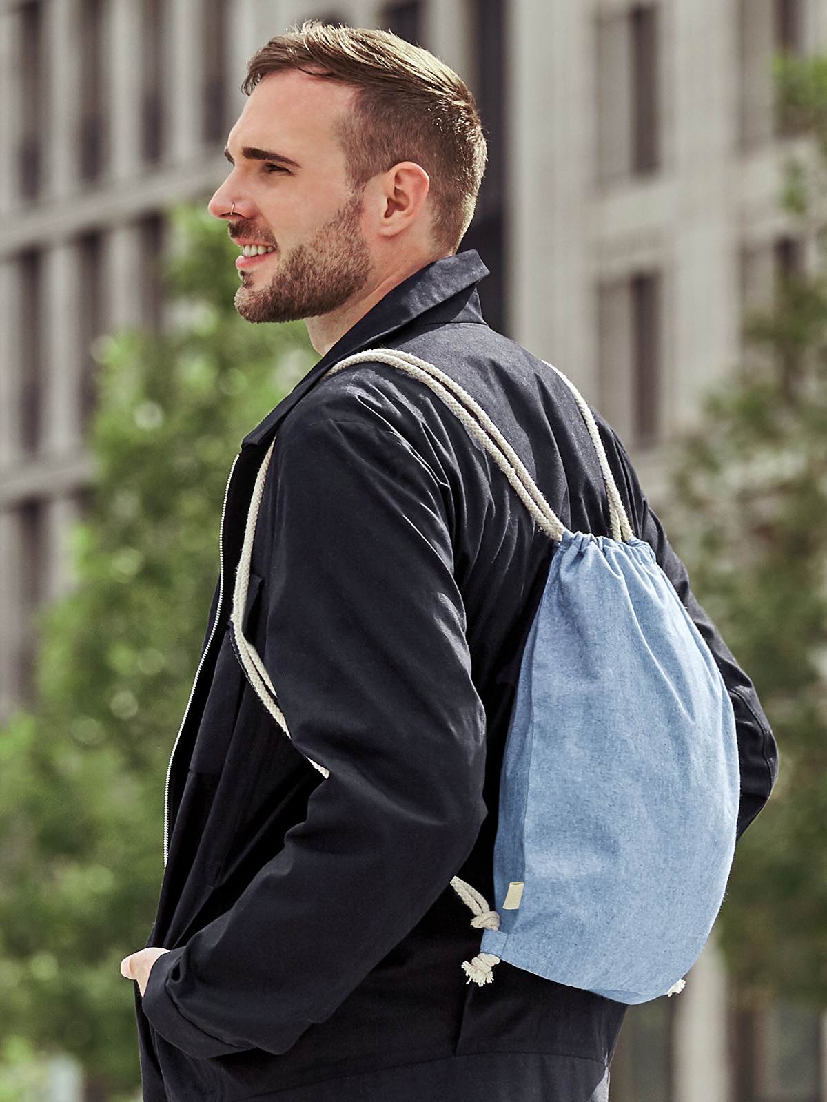 In truth, you can only tell by the sewn-in label: this drawstring bag is a recycling product. Its body was made from pre-recycled cotton. In practical terms, this means from reworked offcut remnants from bag production. So give this second life its own meaning: customise the drawstring bag with your logo and put it back into circulation as promotional bag or bonus gift. As a truly universal talent, it gives sustainable joy!