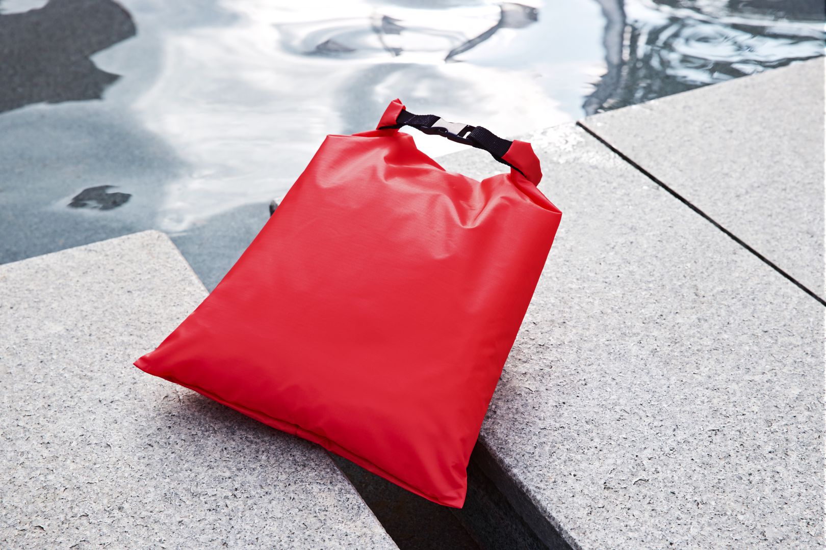 Weather? Doesn’t matter! The SAFE drybag keeps everything dry. The small, ultra-lightweight packsack is the perfect size for your wallet, keys, spare socks, last-minute concert tickets and anything else precious to you. It is incredibly easy to use: just put your things in, roll over the top of the bag three times and seal with the buckle. The material and the sealed seams are water-repellent. And a little air inside the bag provides extra protection for the items inside. Incidentally, the packsack can also be attached to the outside of a backpack or used inside as an interior pouch. Available in a range of colours and easy to individualise with a logo.