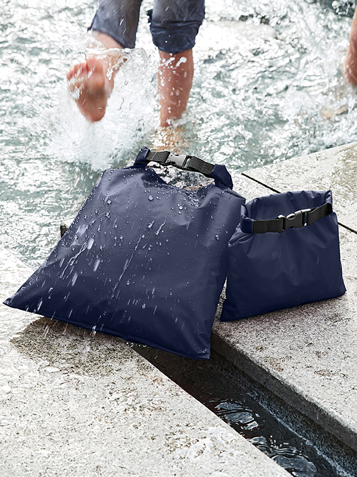 This packsack reliably protects clothing, documents and more against moisture – in two totally different ways. Pack dry things to protect them against damp surroundings, or pack wet things to protect the dry things around. Whichever way you need. Use the 6 litre bag with sealed seams for swimming things or dirty laundry when travelling, keep your wallet and tickets dry on a city trip, or use the drybag for things you want to protect against dust, dirt and moisture. Available in a range of colours.