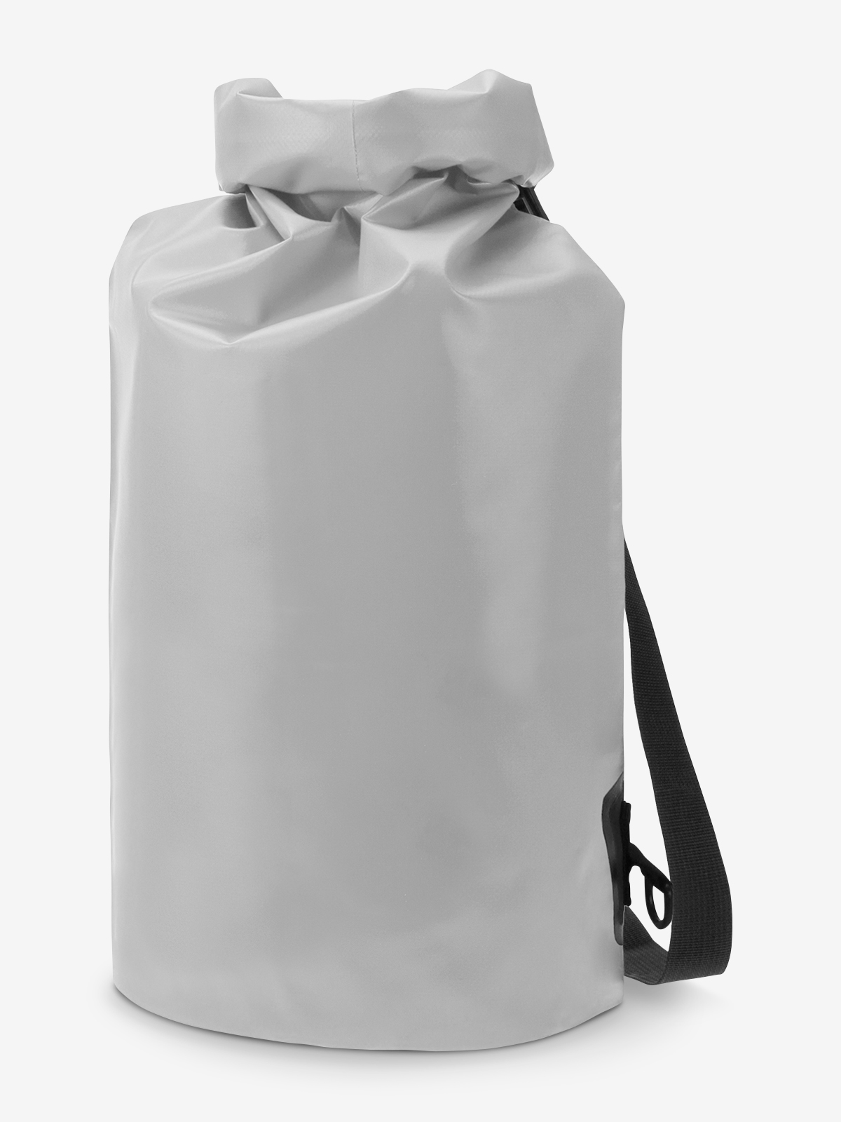 Or to put it even better: If you are already standing in the rain at least everything will stay dry. Whether in a light drizzle or strong showers: this soft tarpaulin bag is in its element in wet weather. Water-resistant, with welded seams and equipped with a smart roll closure: this bag is the recommended tip for adventure seekers. Hip promotional media for travel, outdoors, youth or city marketing. Also available in a larger size with #1809787.