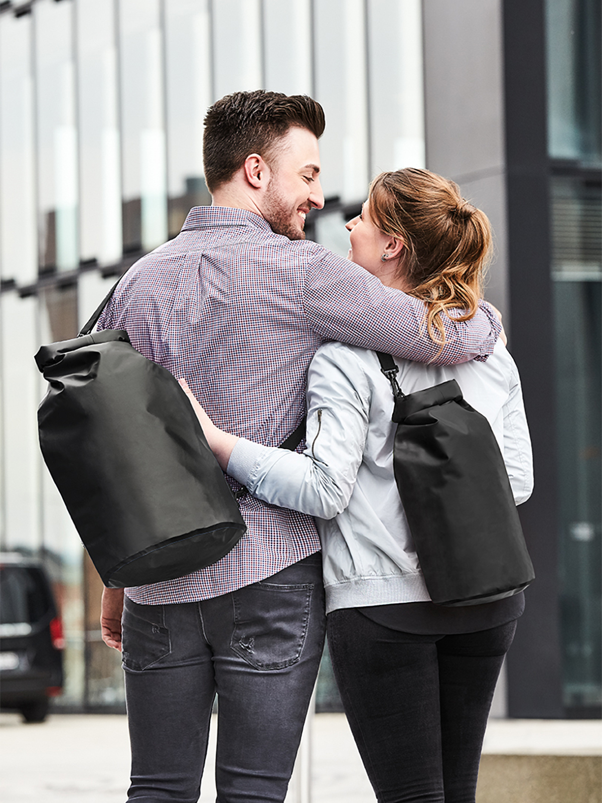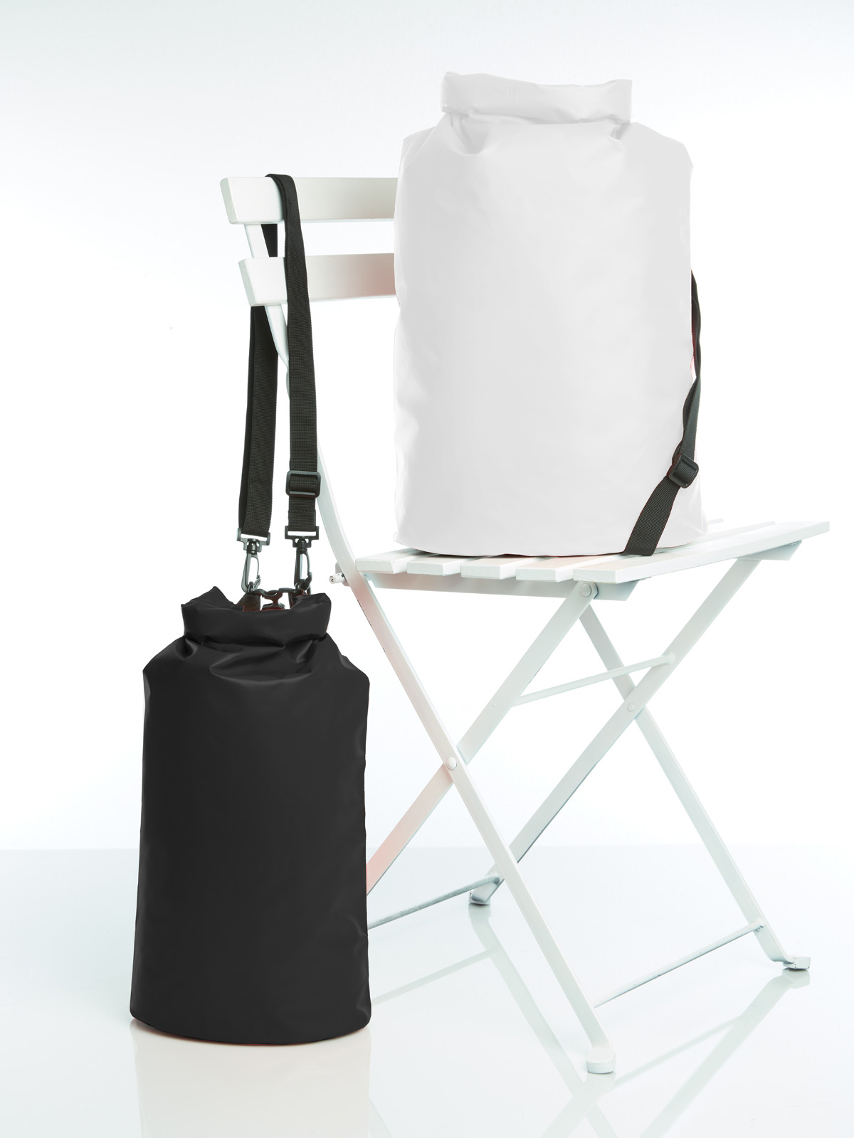 Or to put it even better: If you are already standing in the rain at least everything will stay dry. Whether in a light drizzle or strong showers: this soft tarpaulin bag is in its element in wet weather. Water-resistant, with welded seams and equipped with a smart roll closure: this bag is the recommended tip for adventure seekers. Hip promotional media for travel, outdoors, youth or city marketing. Also available in a larger size with #1809787.