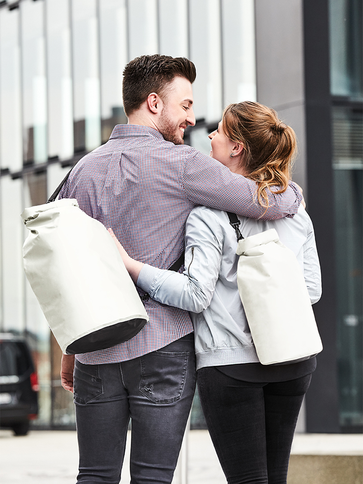 A picnic along the Alster River, a bike tour to the swimming lake or a weekend at a North German festival: the dry bag SPLASH tarpaulin bag does it all and stays dry. Thanks to its water-resistant material, welded seams and roll closure, you no longer have to worry about splashes, puddles or surprise rain showers. And this bag's coolness factor is right on. The ideal promotional media for tourism, outdoor and city marketing companies.