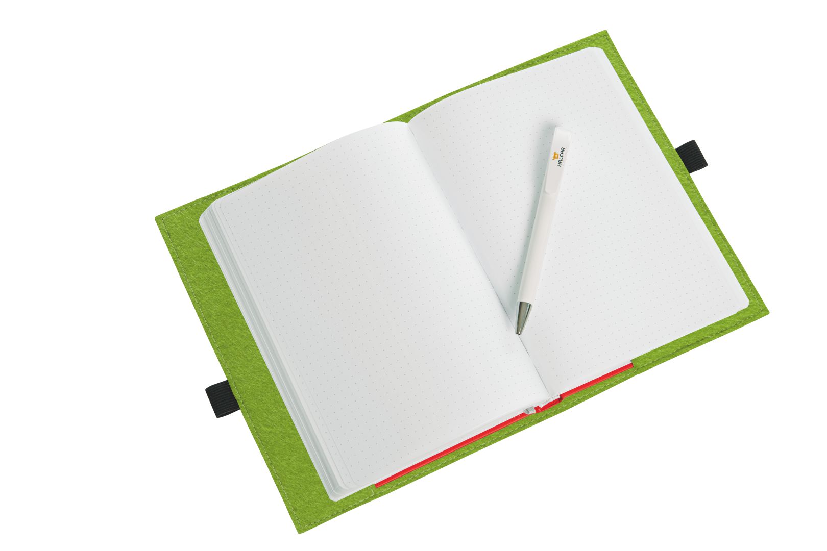 If you don't want to say any big words, but still want to make an impression: The handy and premium quality ECO M A5 felt sleeve. It offers space for writing blocks or calendars in pocket book format. With a compartment for business cards, it is not only the right choice for aesthetes, but also for business people. Practical: The pen loops are used to close the sleeve. What a handsome reward for everyone who appreciates an elegant memory aid in business and leisure.