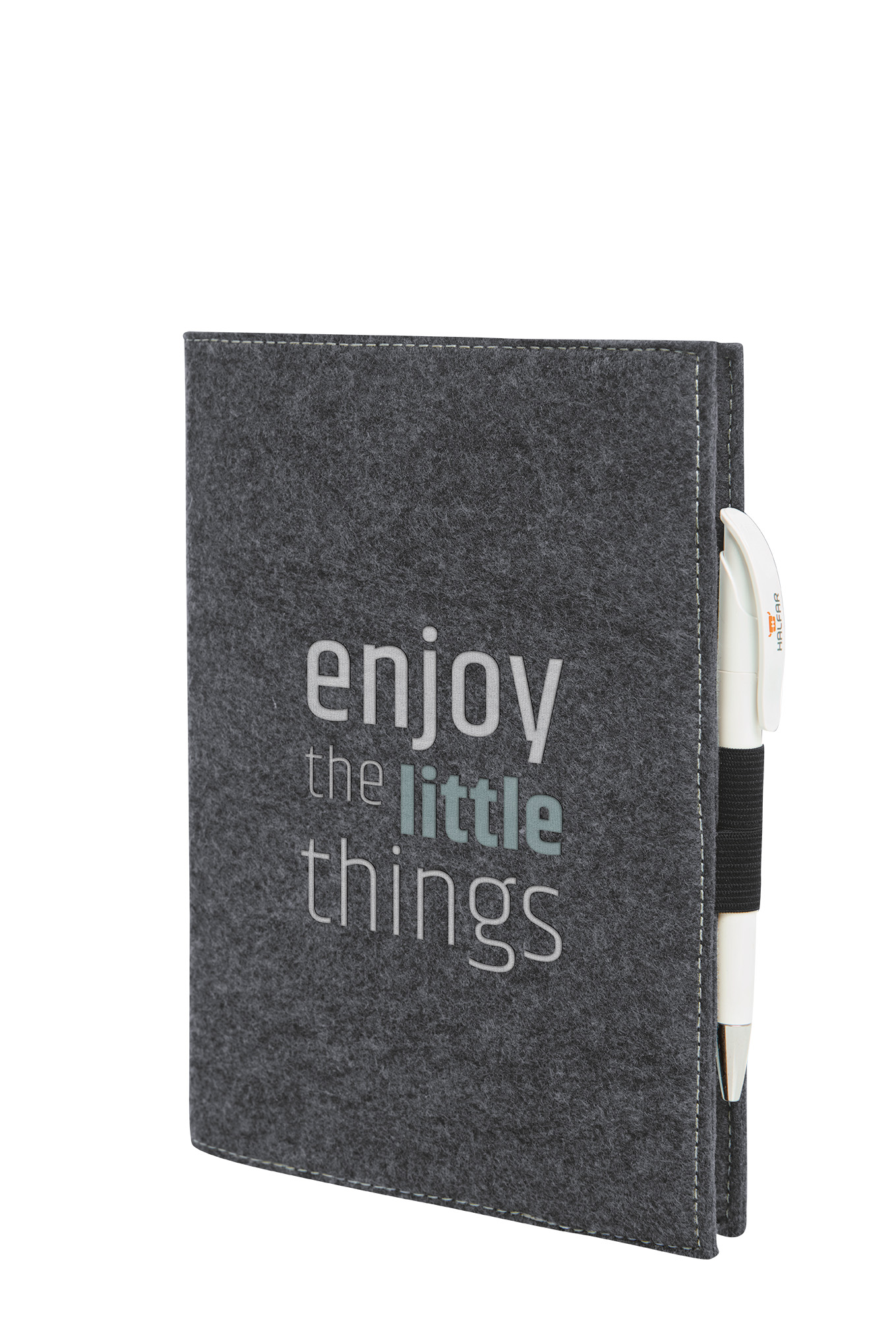 quality felt case suitable for A5 writing pads; insert pocket for business cards; pen loop for closing the cover