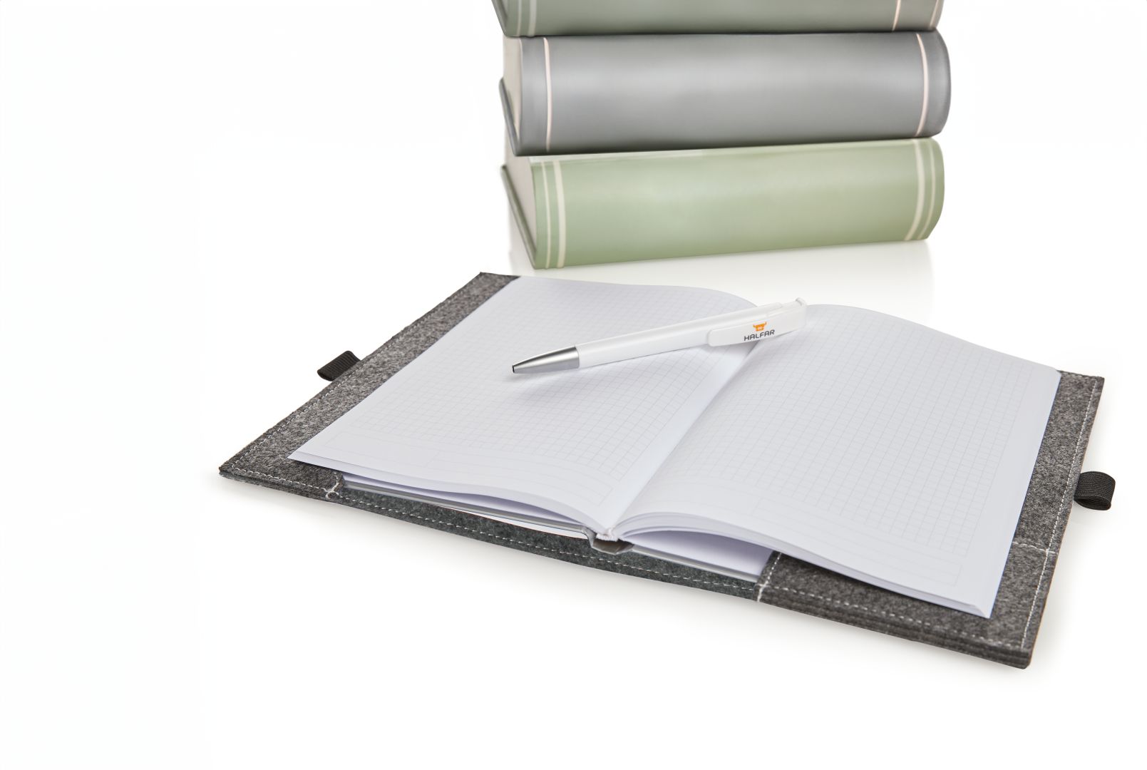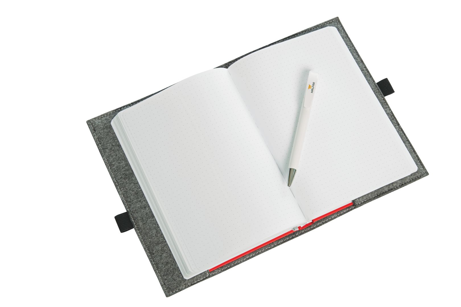 quality felt case suitable for A5 writing pads; insert pocket for business cards; pen loop for closing the cover