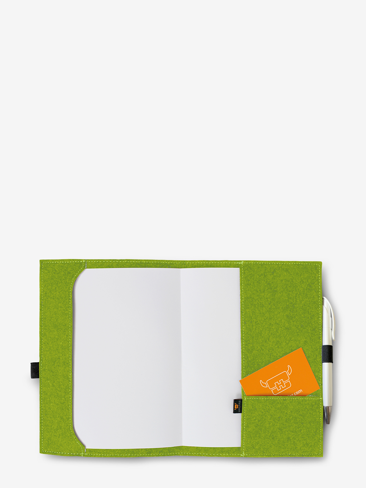 quality felt case suitable for A5 writing pads; insert pocket for business cards; pen loop for closing the cover