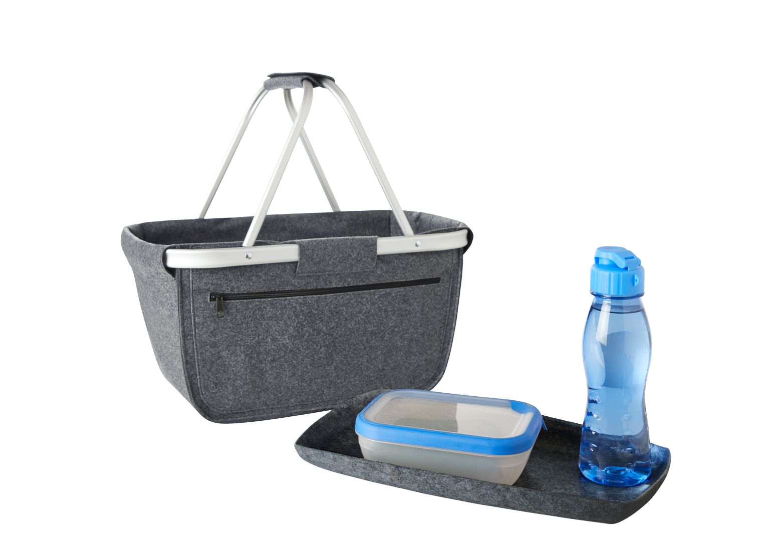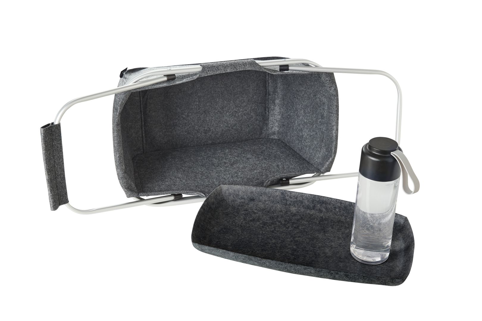 Almost empty deposit bottles, juicy fruit, sandy vegetables, damp and frosty pizza boxes - all this leaves its mark in the shopping basket over time. It's better if the floor is protected. That's why this matching insert made of recycled PES felt is available for the HALFAR® BASKET and SOFTBASKET. A robust and equally practical material. This inlay is gentle, protects and can be wiped clean. What's more: the high rim safely catches dripping water. So the shopping basket itself remains beautiful for a long time and even longer in use. For a happy shopping relationship!