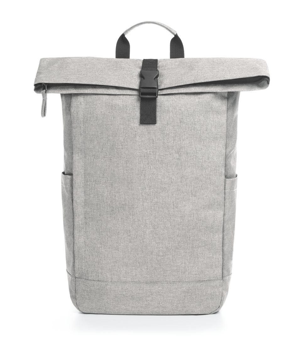 urban backpack with zipped main compartment and buckle fastening; rPET upper material; padded pocket and organizer elements inside; zipped outer pocket on side; two side pouches for bottles etc.; zipped pocket on back; padded strap system; handle